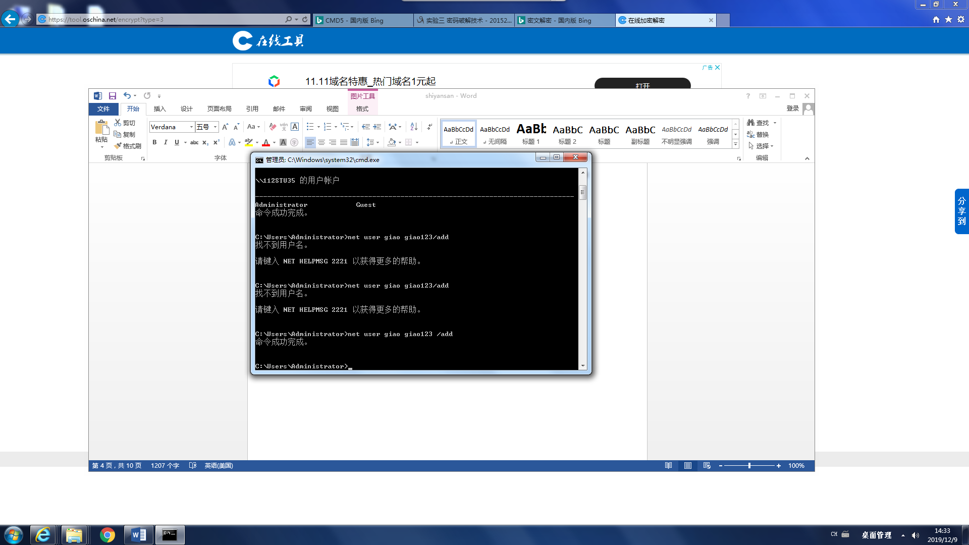 2.了解并熟悉常用加密算法、加解密工具、破解工具等互联网资源,对给定的密文、加密文件、系统密码进行破解;
