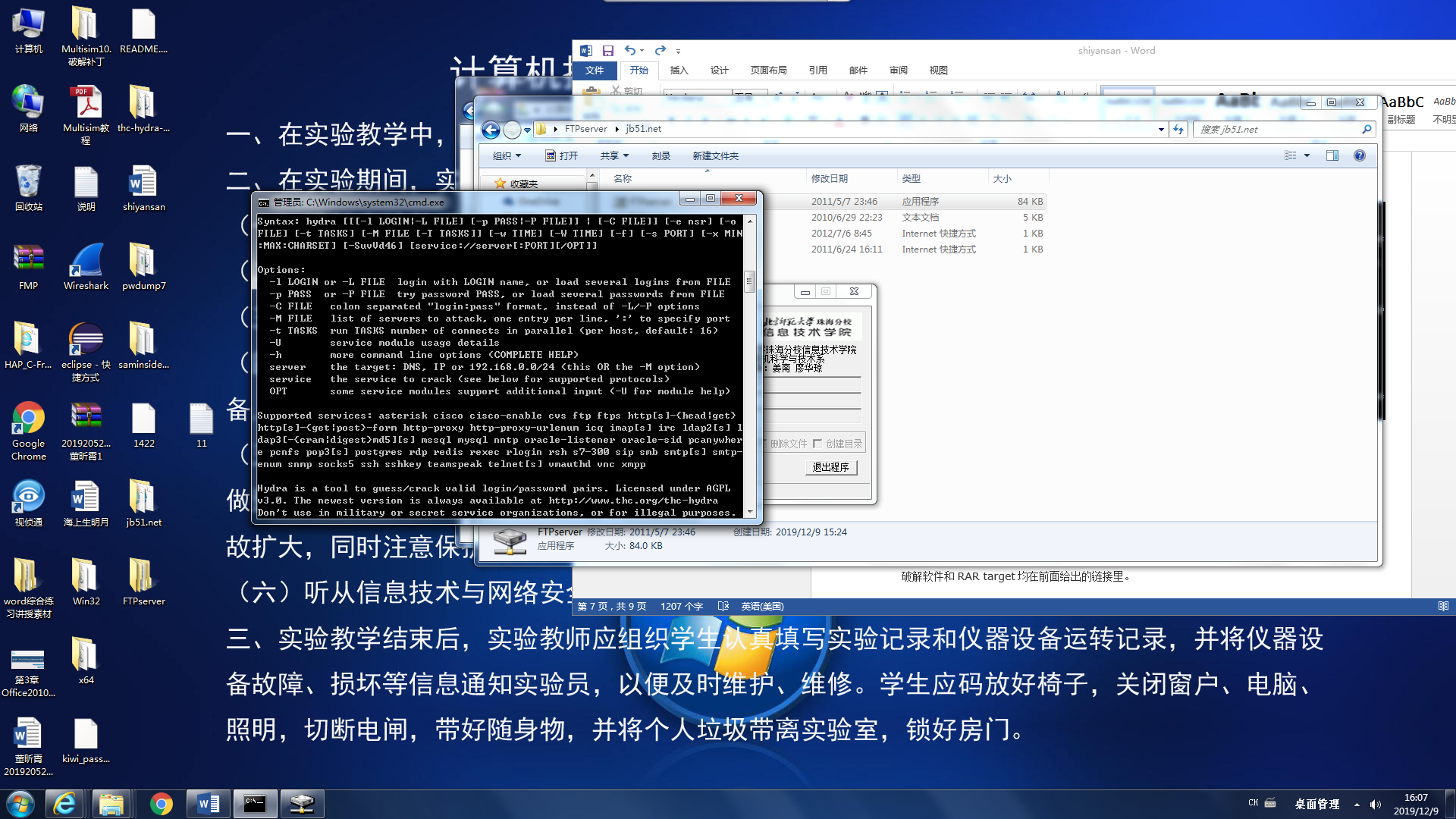3.软件工具可使用john the ripper或hydra、字典生成器、pwdump7等。