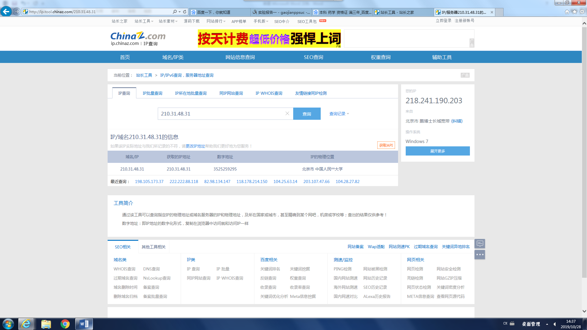 210.31.48.31,该IP地址是属于哪个单位的(附截图)