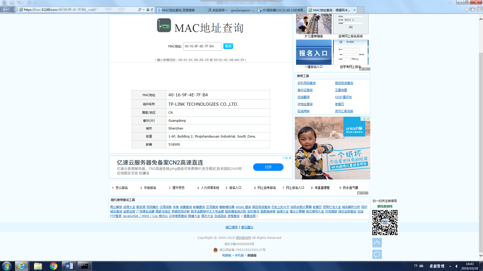 在一个案件中,获取了犯罪嫌疑人的一个MAC地址:40-16-9F-4E-7F-B4,请查询该MAC地址对应的厂商是(附截图)