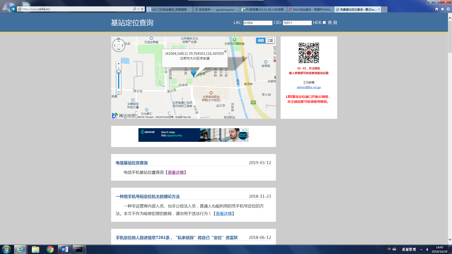 在一个案件中,获取了犯罪嫌疑人的LAC是41064,CID是16811,这个人可能在什么地方?(附截图)