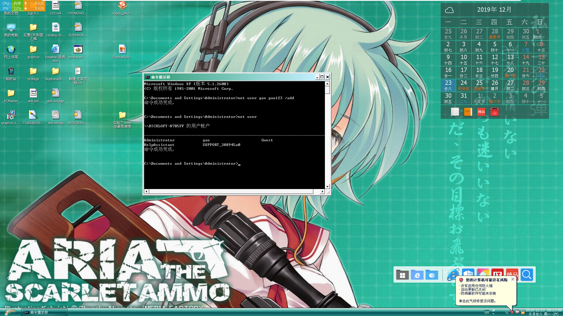 1.在windows xp系统中使用 net user gao gao123 /add添加用户gao,密码gao123的账户(用户名和密码可以自己设定);并使用net user命令确定用户添加成功。