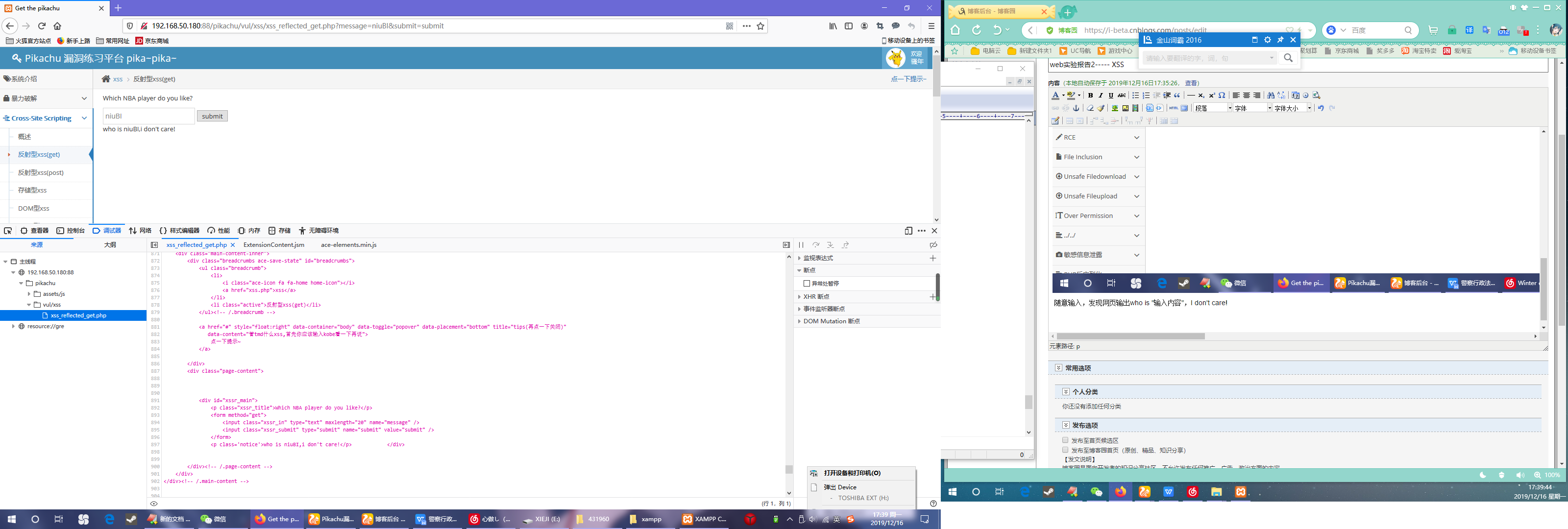简直完美,第一个反射型XSS完成,同时看浏览器url发现我们的参数,后端未存储该内容。