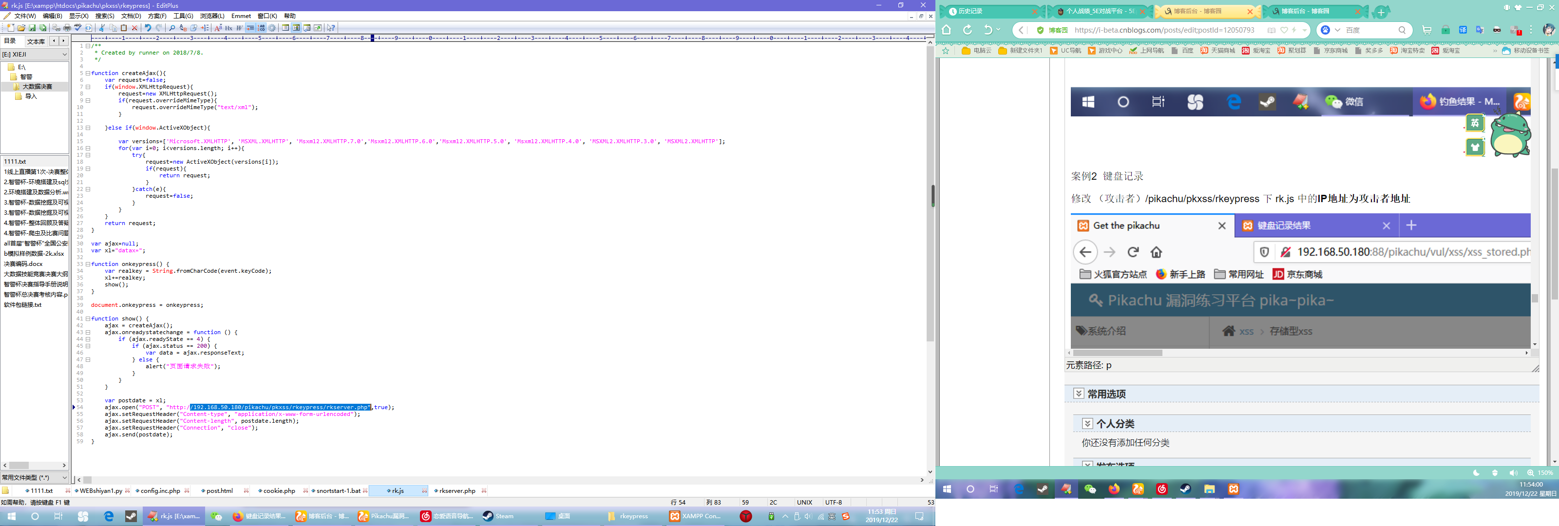 修改 (攻击者)/pikachu/pkxss/rkeypress 下 rk.js 中的IP地址为攻击者地址