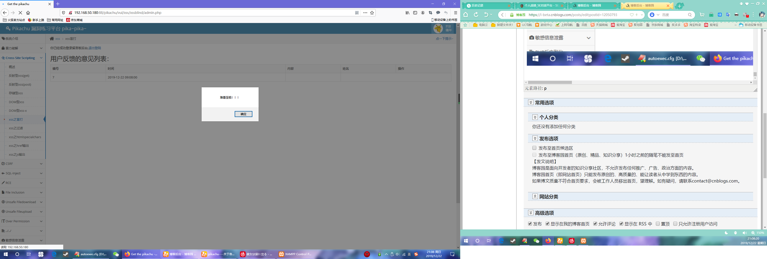刷新页面可以看到很多弹窗,都是由于内容已经写入后台