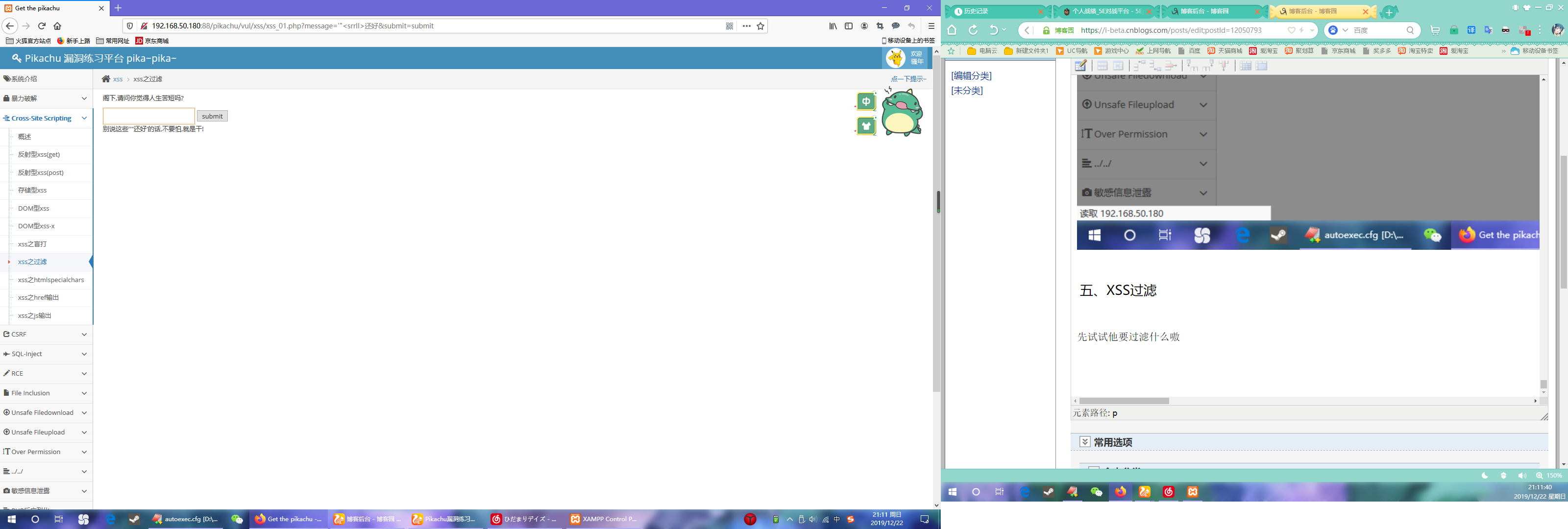 形成XSS漏洞的主要原因是程序中输入和输出的控制不够严格导致“精心构造”的脚本输入后,