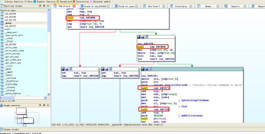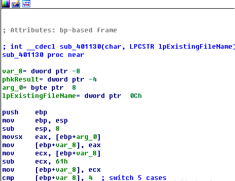 (1)可以看到sub_401130是这次实验main调用的新函数,sub_401000和sub401040与lab 6-2中的一样。