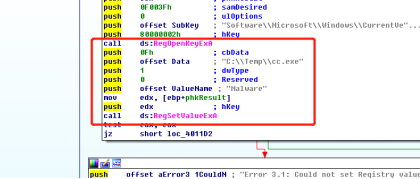 RegOpenKey和RegSetValue分别对应打开注册表以及把这个程序写进去。