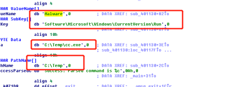 (5)会在本地创建一个C:\\Temp文件夹和创建一个C:\\Temp\\cc.exe文件,然后会在注册表中Software\Microsoft\Windows\CurrentVersion\Run中添加一个值C:\Temp\cc.exe。这都是这个程序留下来的痕迹。