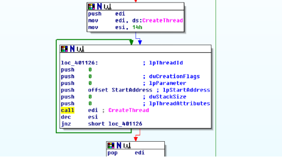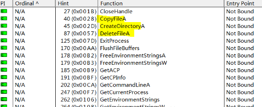随后发现的OpenSCManagerA(在指定的计算机上建立与服务控制管理器的连接,并打开指定的服务管理器数据库)和CreateServiceA(创建服务)函数更明确了这是一个服务,来保证它在系统重启后依旧能运行。