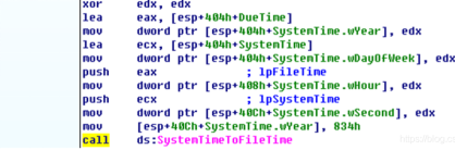 SystemTime所有值都被设置为0但在wYear上被赋值为834h,换算十进制为2100