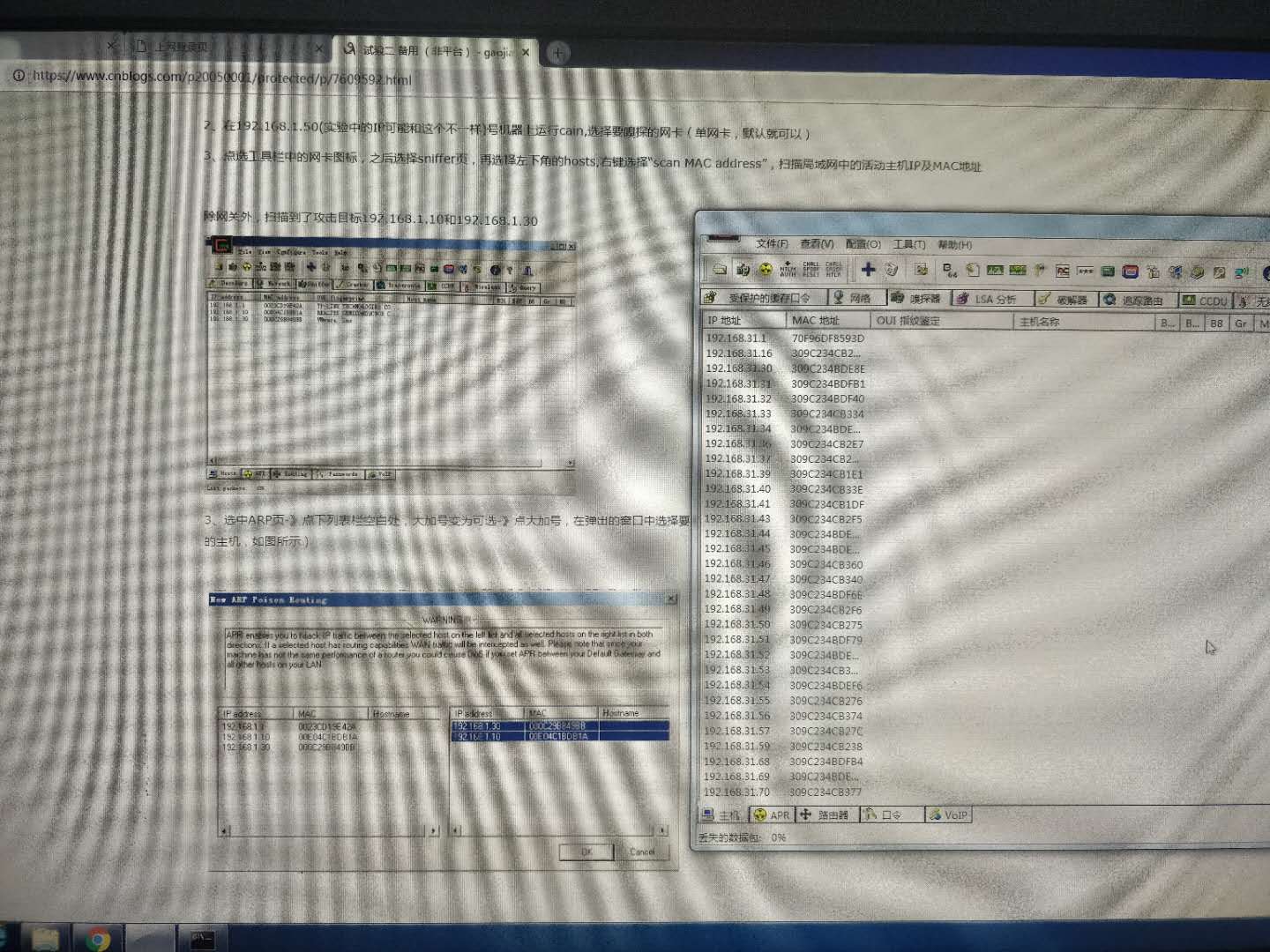 3.软件工具可使用office2003或2007、CAIN、Wireshark等。
