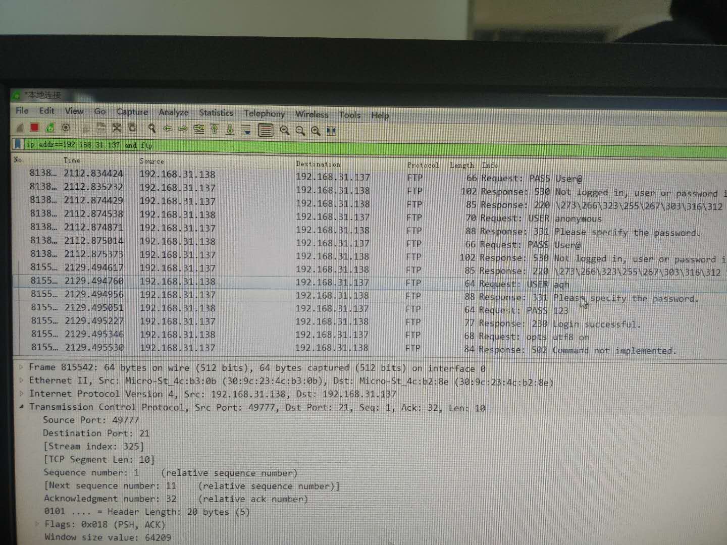 受害者登录连接ftp服务器,在攻击机看到用户名及用户密码