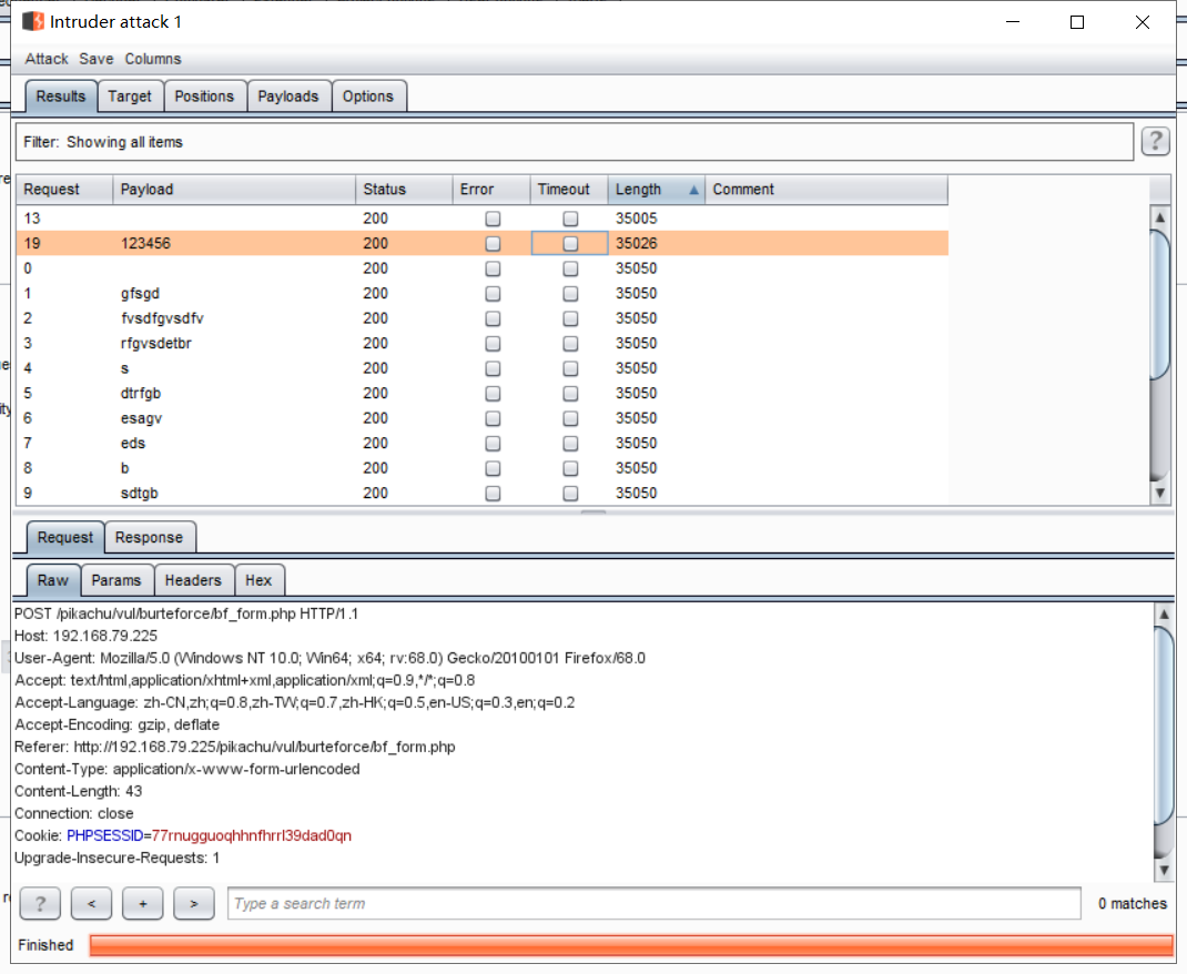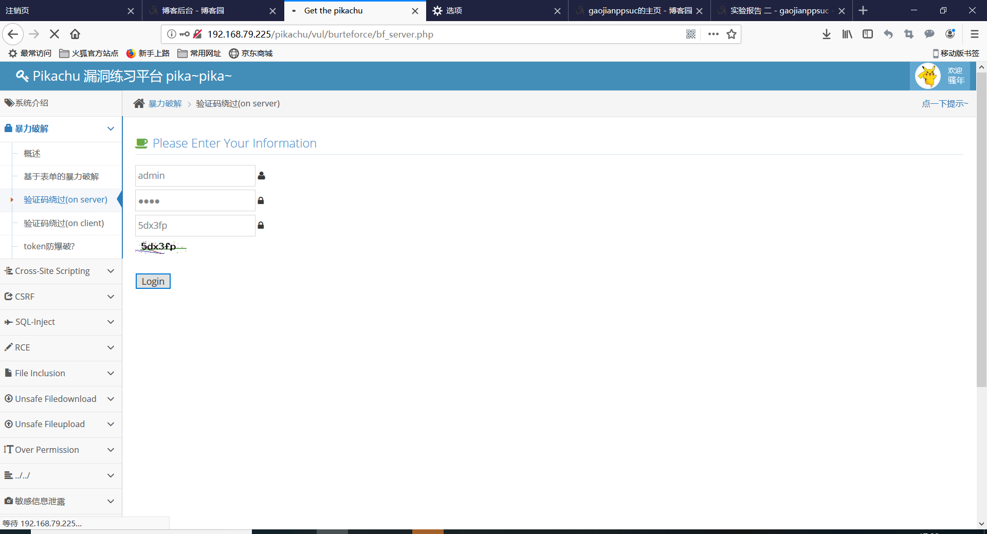 因为服务器端验证码存在生存时限,所有先输入正确的验证码,然后进行爆破。