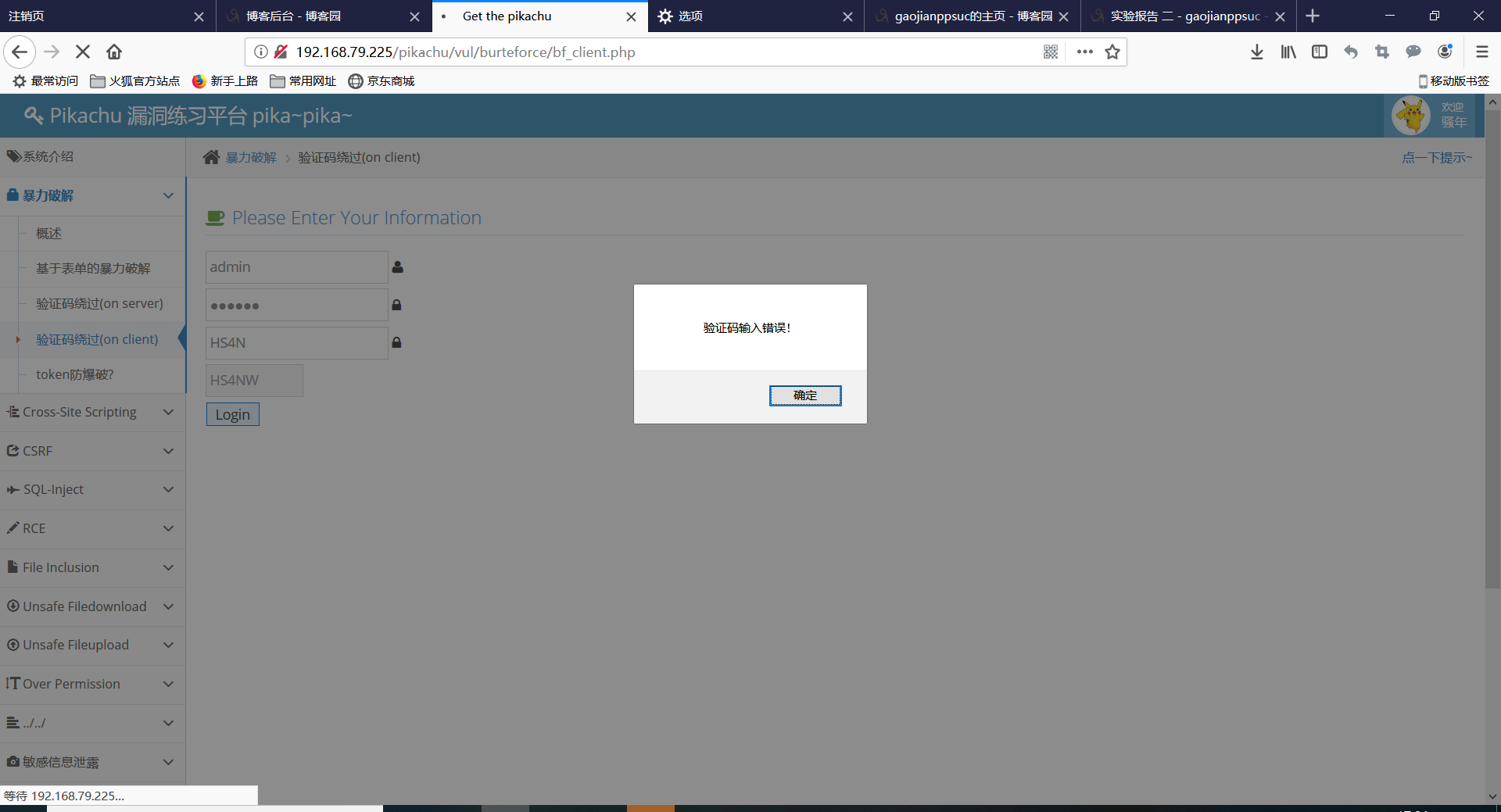发现验证码核对在前端,所以先输入正确的验证码,然后进行爆破