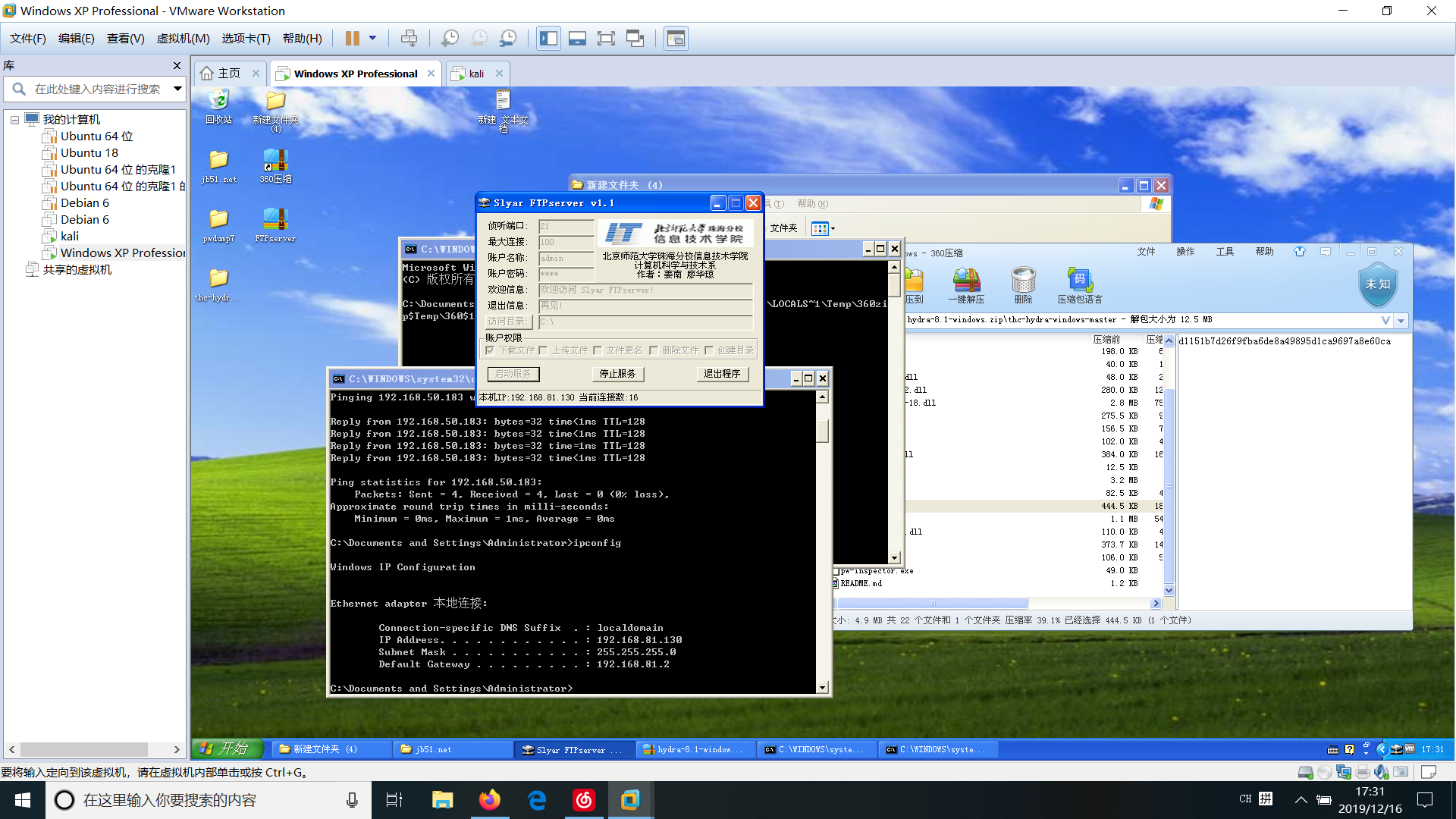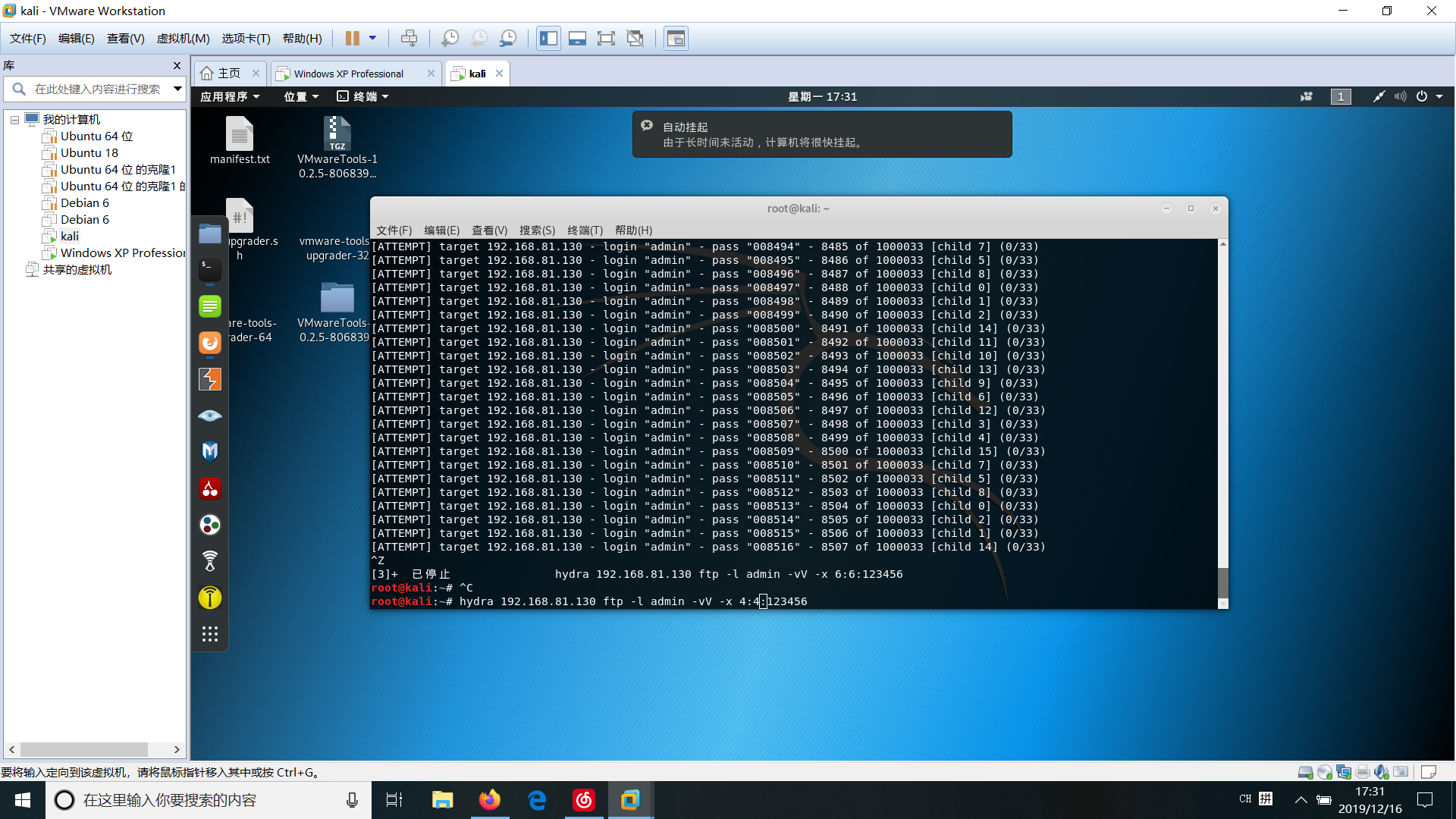 2.B同学使用hydra 对ftp用户的密码进行字典破解。hydra 中有关于该软件的使用命令语法。字典文件需要自己去生成。