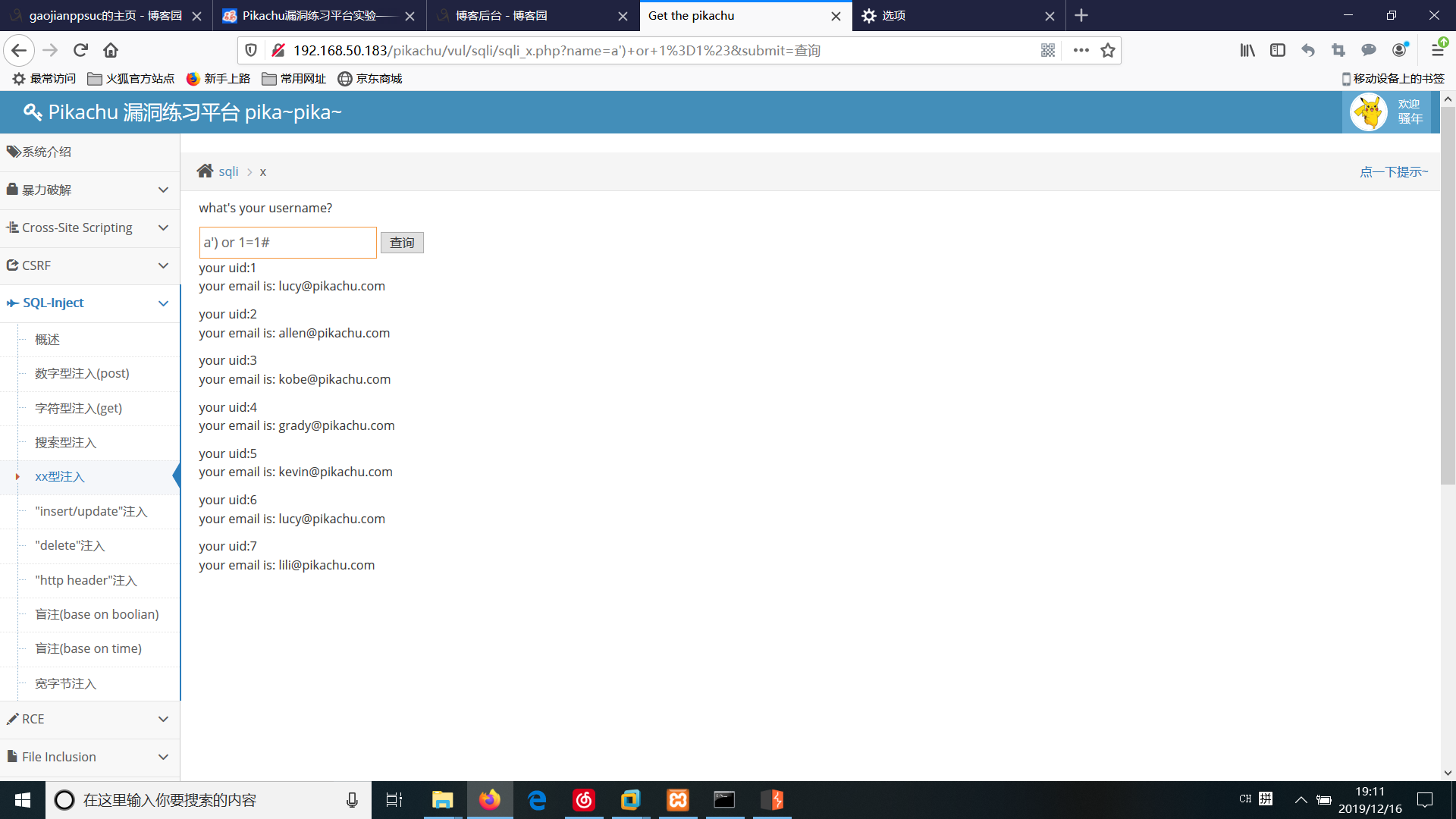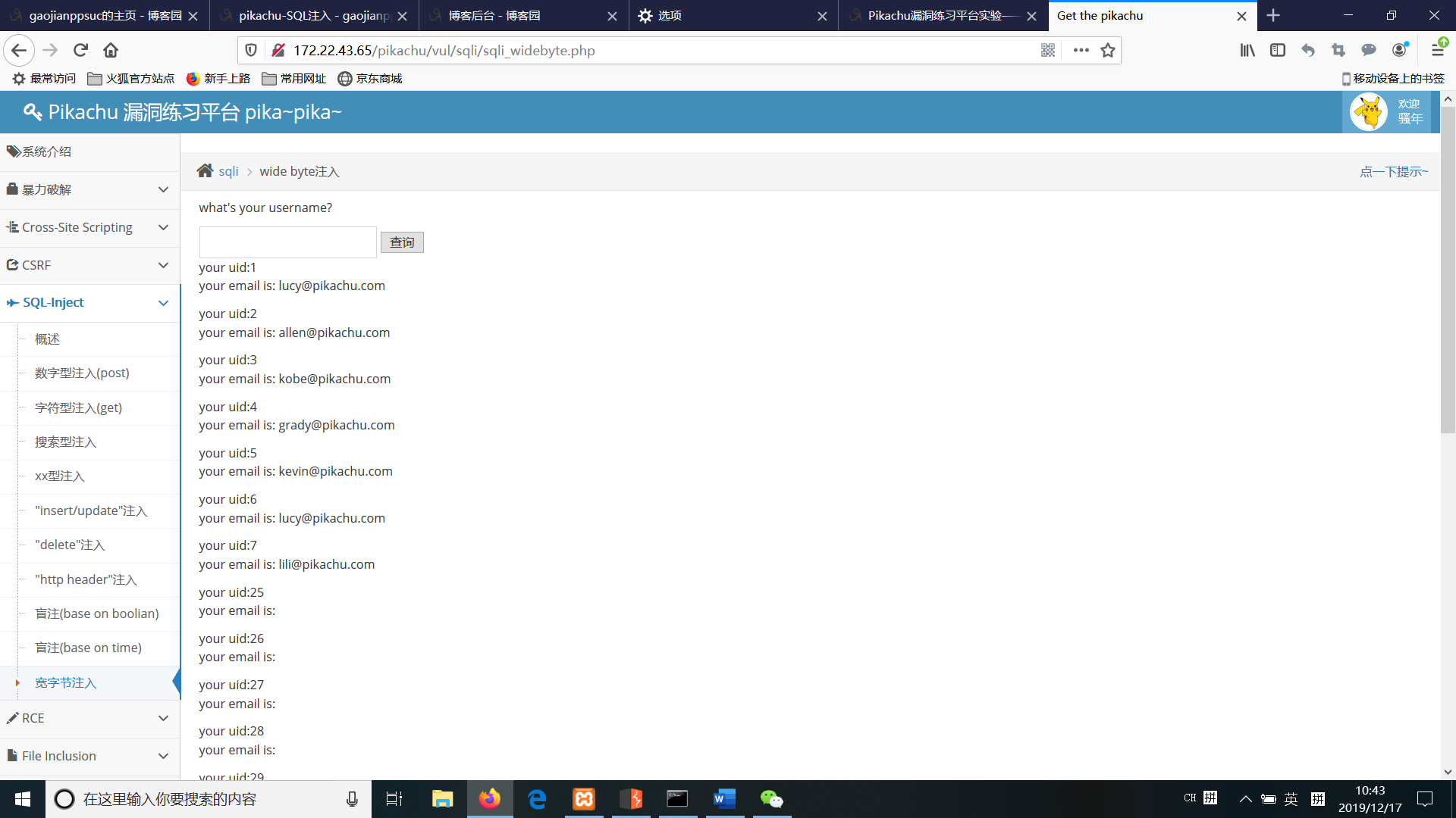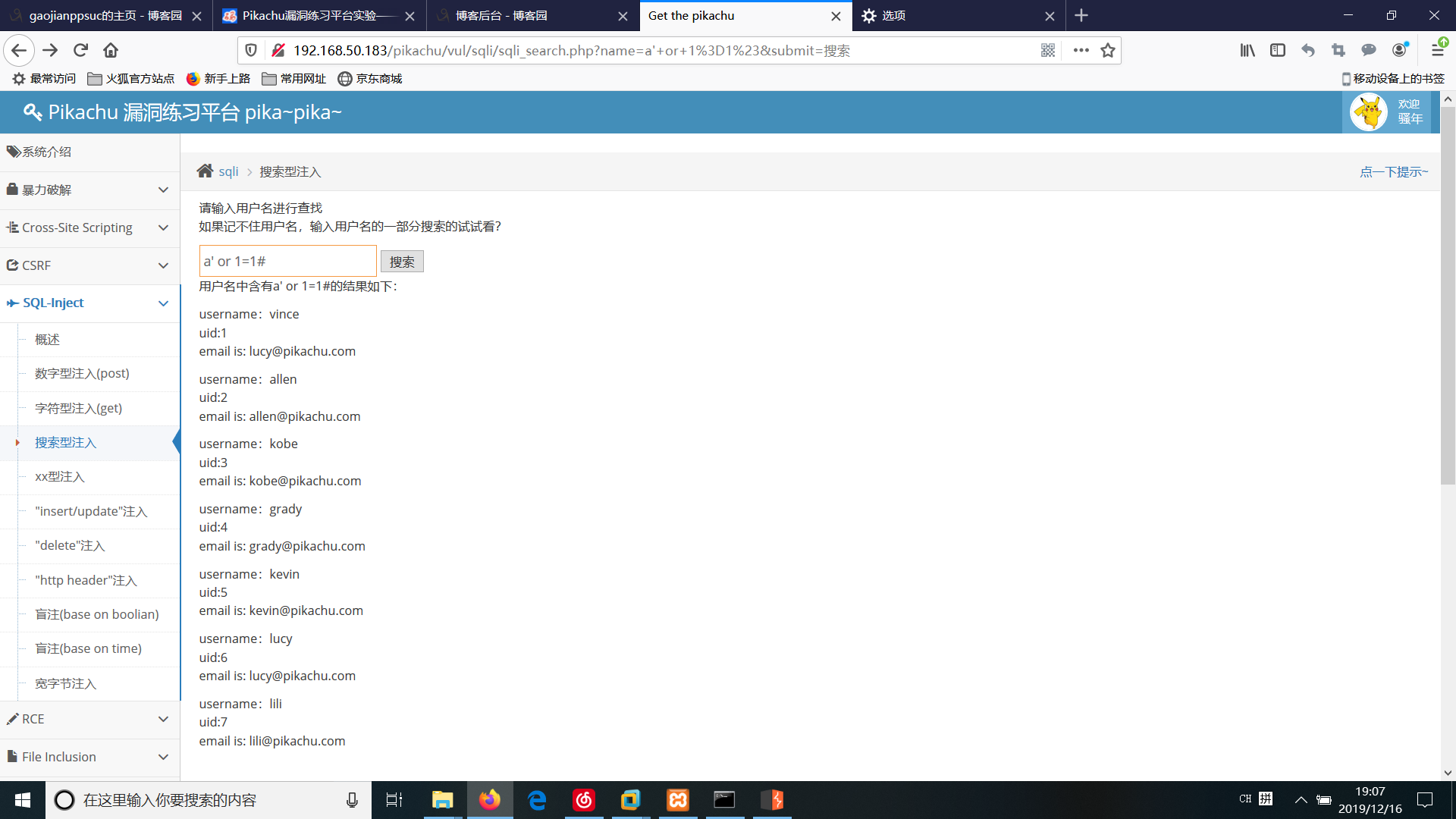 发现‘被后台转移,所以构造payload kobe%df' or 1=1#