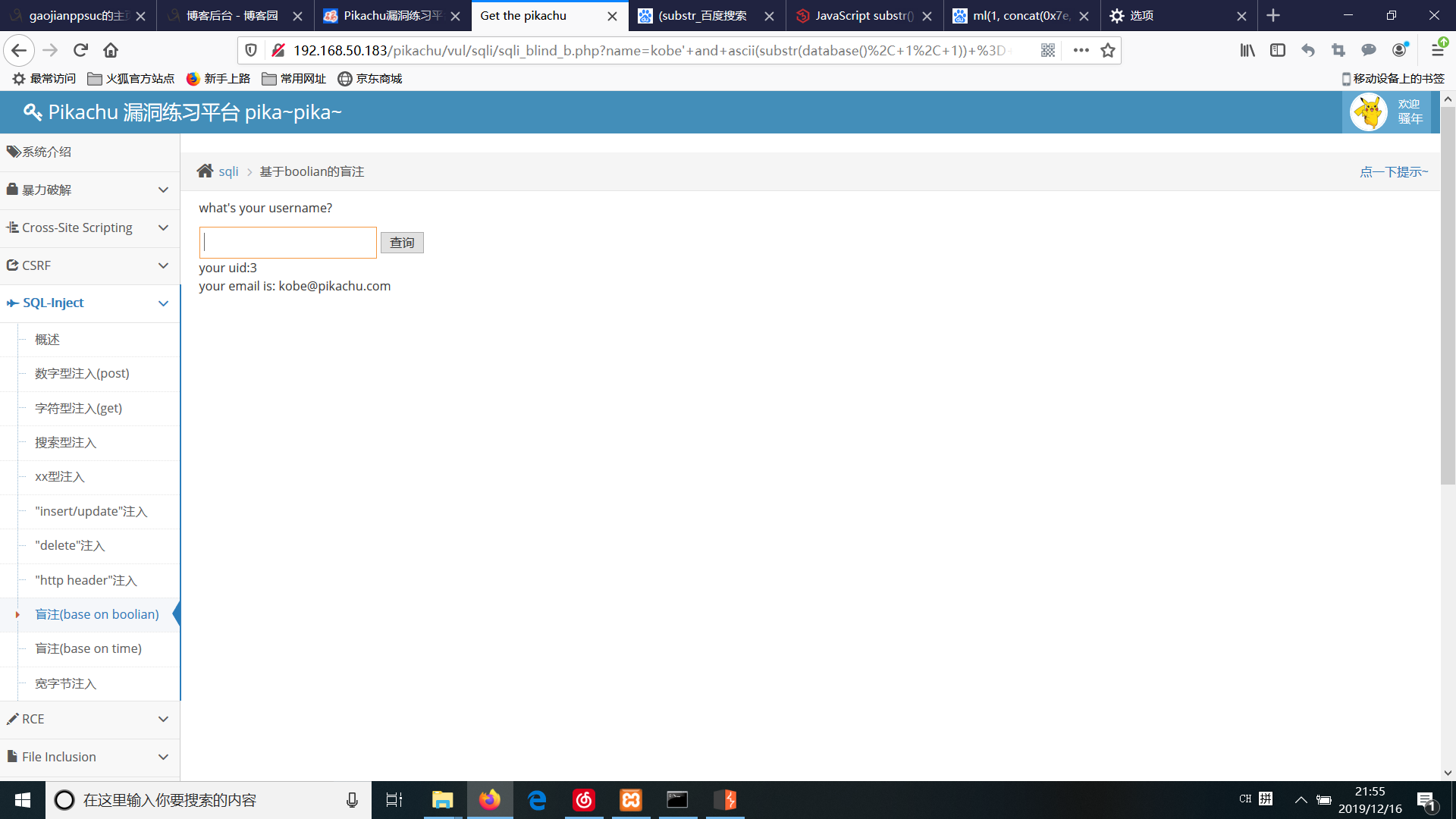 kobe‘ and ascii(substr(database(), 1, 1)) > 105#