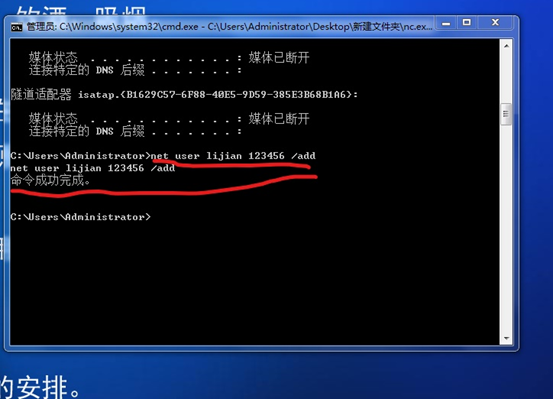 攻击者主机通过命令行在受害者主机上添加新用户用户名为lijan