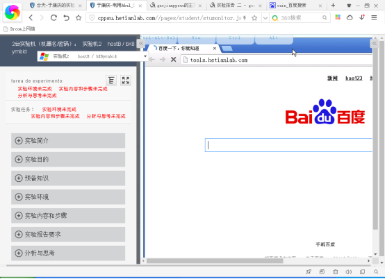 6.我们在10.1.1.39上搭建了一个web服务器,并且有配置tools.hetianlab.com的域名。在主机B上访问“tools.hetianlab.com”时,会自动跳转到10.1.1.39指定的服务器页面上。该页面是模仿的百度首页。