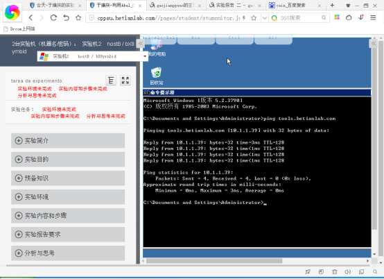 8.在主机B上ping tools.hetianlab.com,可以看到,此时该域名已经指向了10.1.1.39