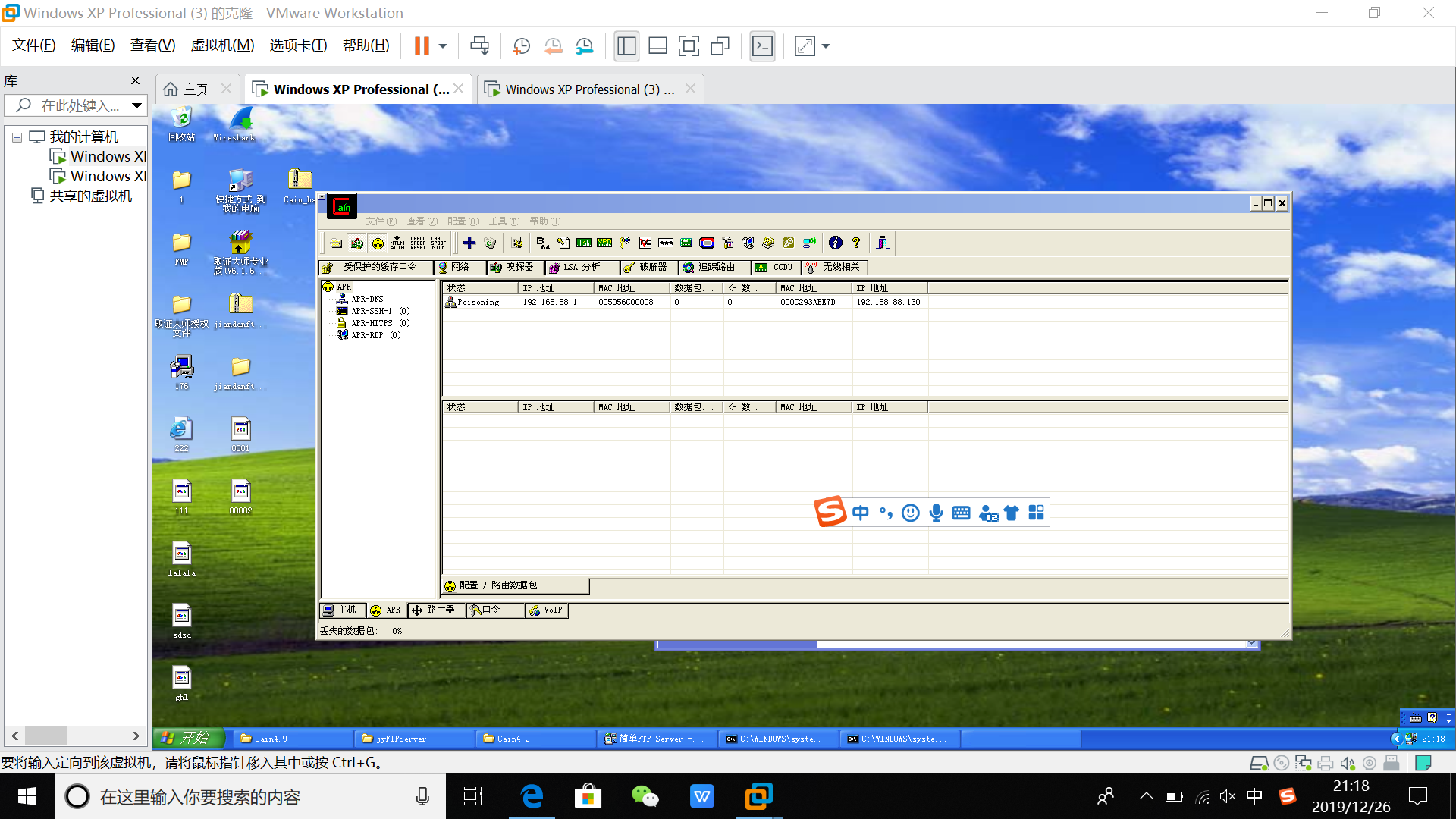 任务一:在主机A上安装Abel&Cain软件,对主机B进行ARP欺骗;