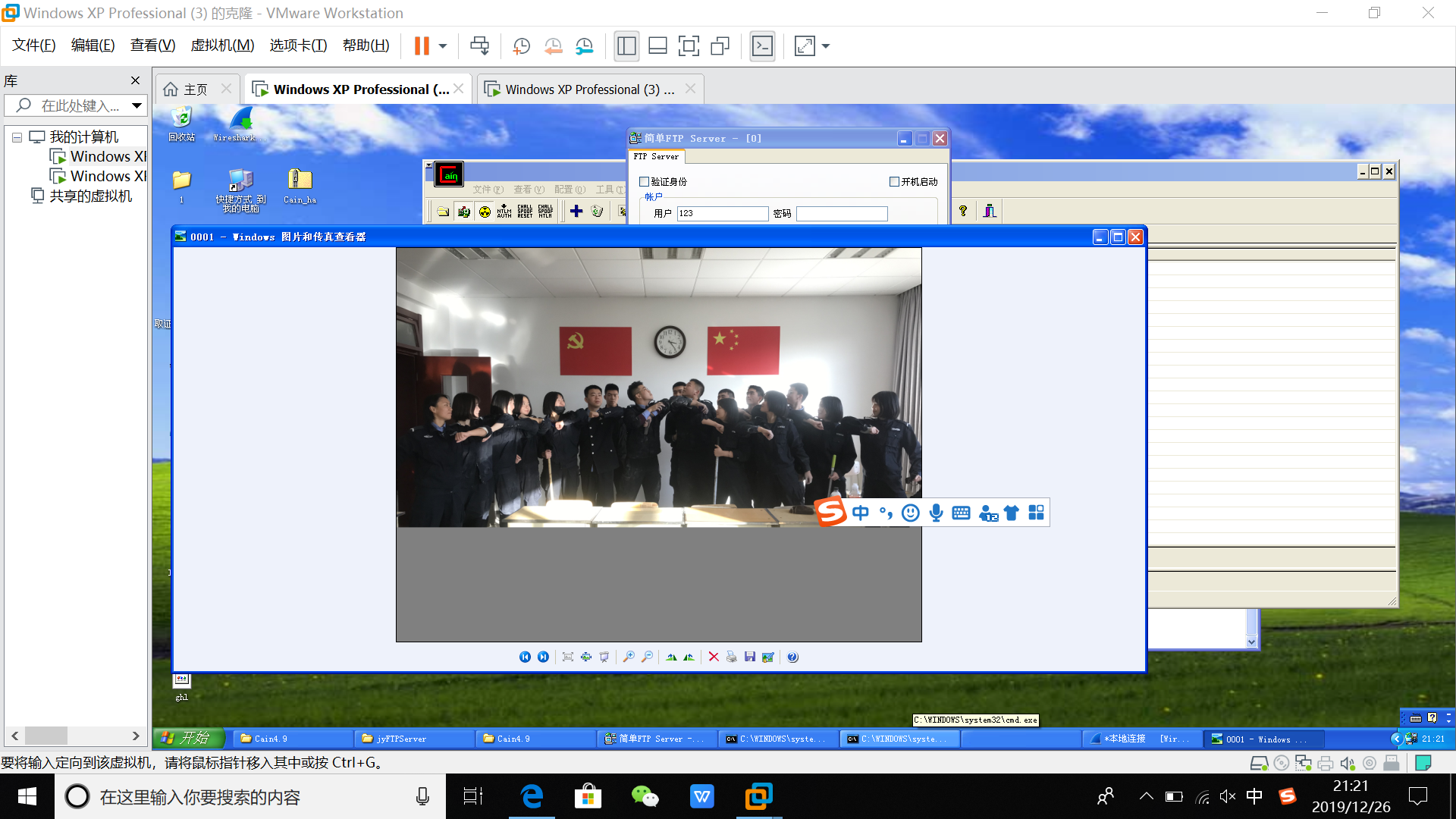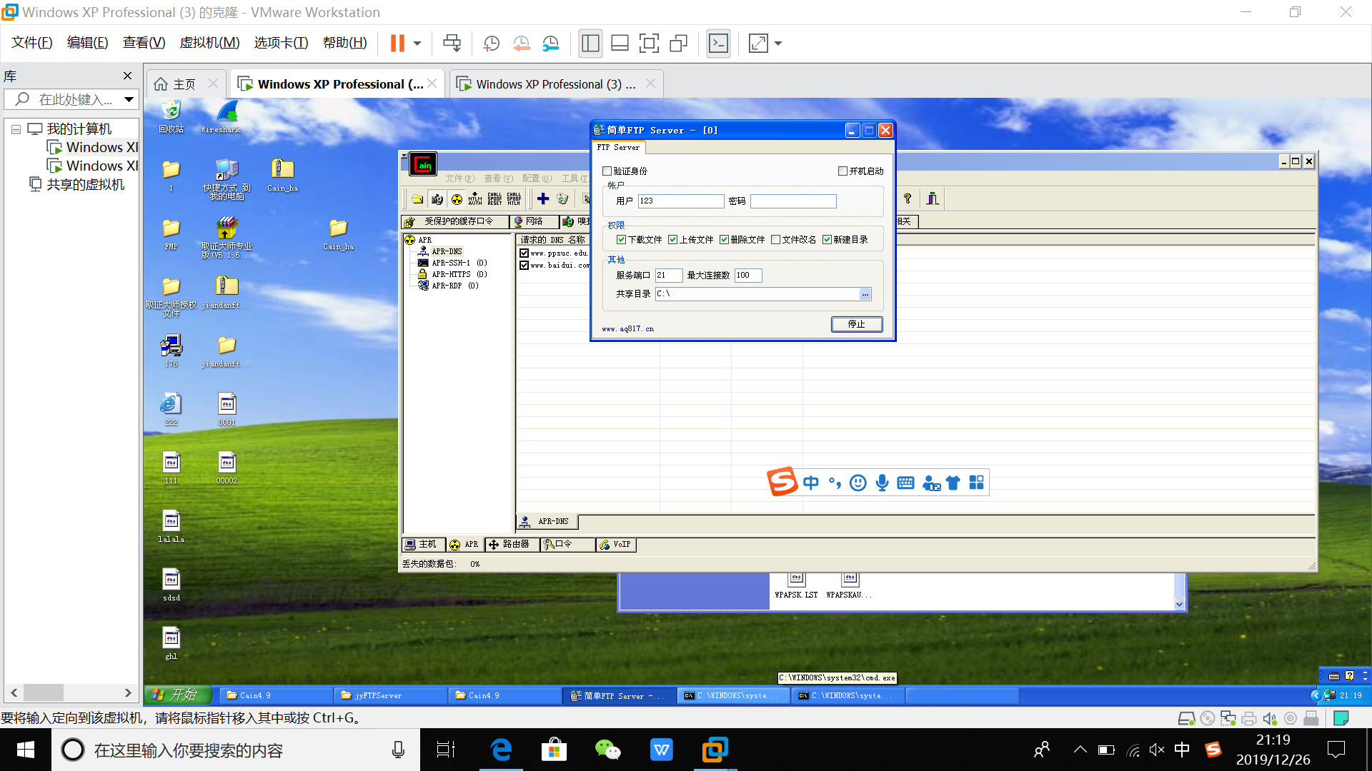开机并启动软件office2003或2007、浏览器、Wireshark、CAIN。
