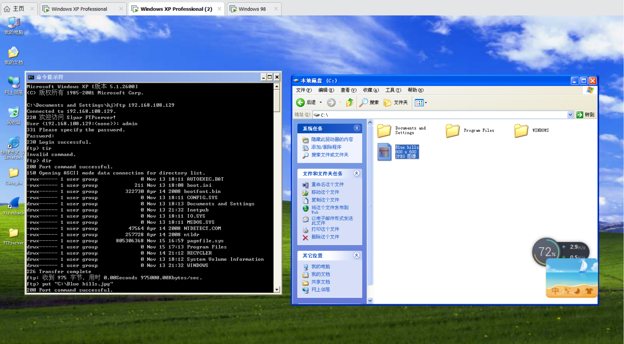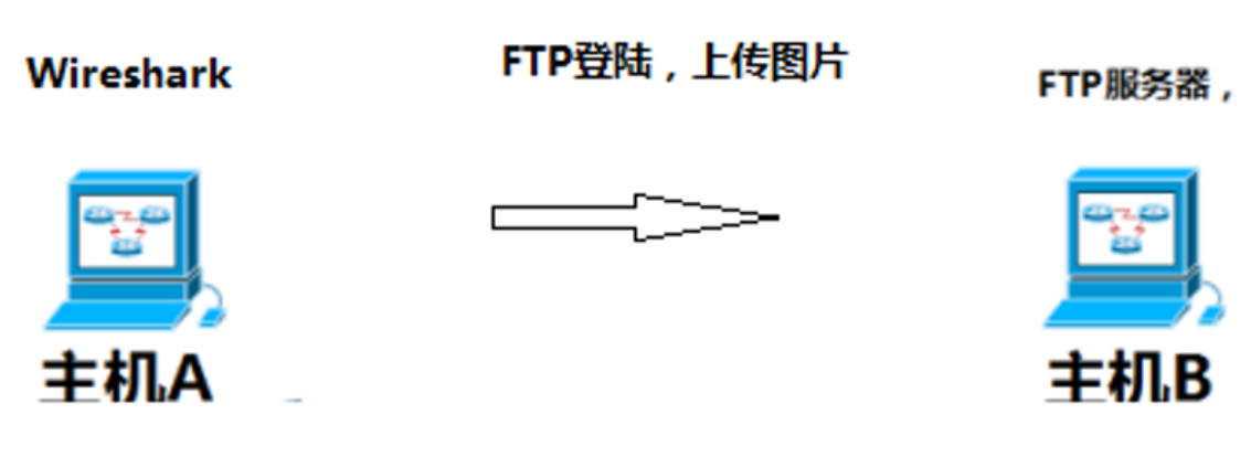 3.B同学在机器中安装Wireshark,并将其打开;之后用用户名和密码登陆A同学的FTP服务器,并上传一张图片。
