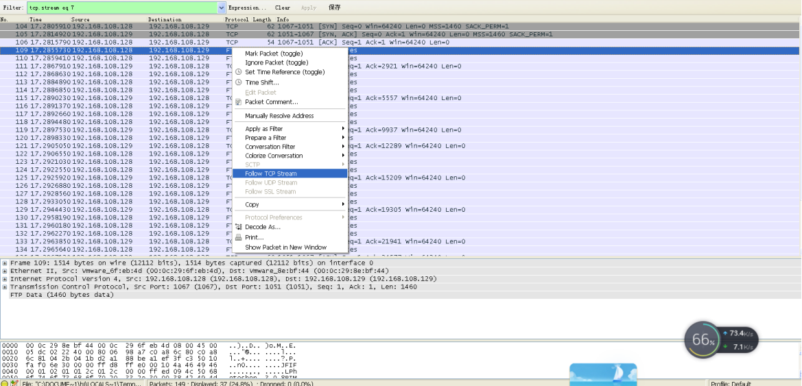 在fliter原命令前加入!,过滤掉ftp控制连接数据,剩下的就是传输的文件数据。
