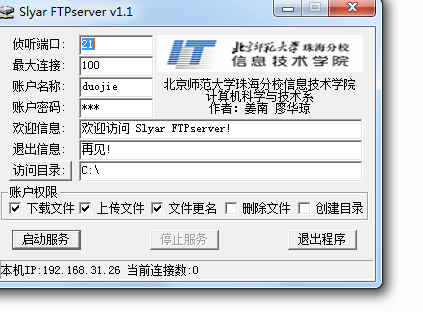 两个同学配合完成,A同学搭建FTP服务器,并新建用户,并设置登陆密码