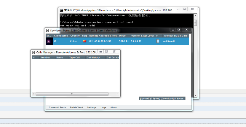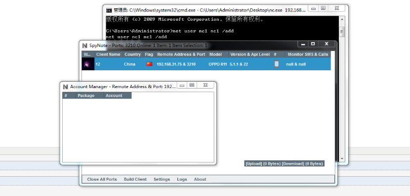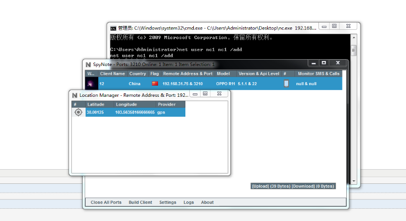 一、攻击者打开spynote软件,该软件需要先安装.netframework4.0和jdk环境。