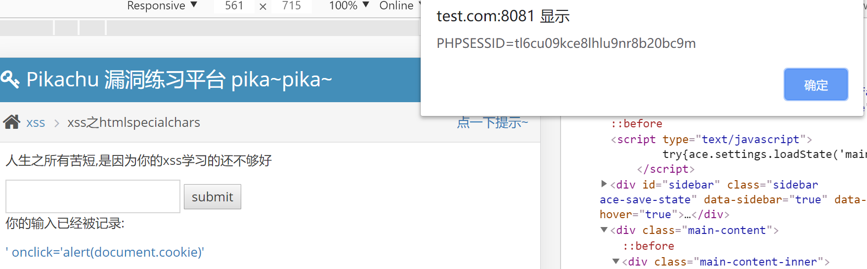 利用8中构造的payload: ' onclick='alert(document.cookie)' 进行尝试: