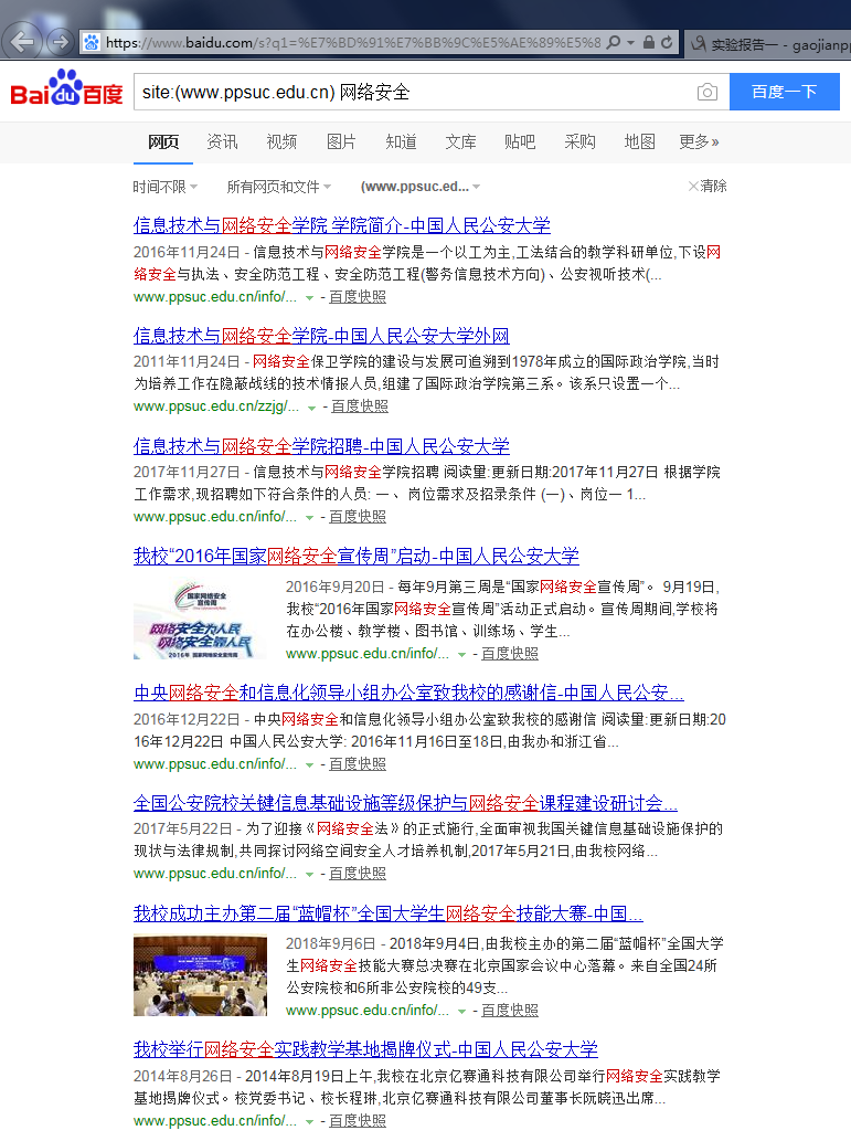 用百度或google搜索www.ppsuc.edu.cn中所有包含“网络安全”的网页。(附截图)