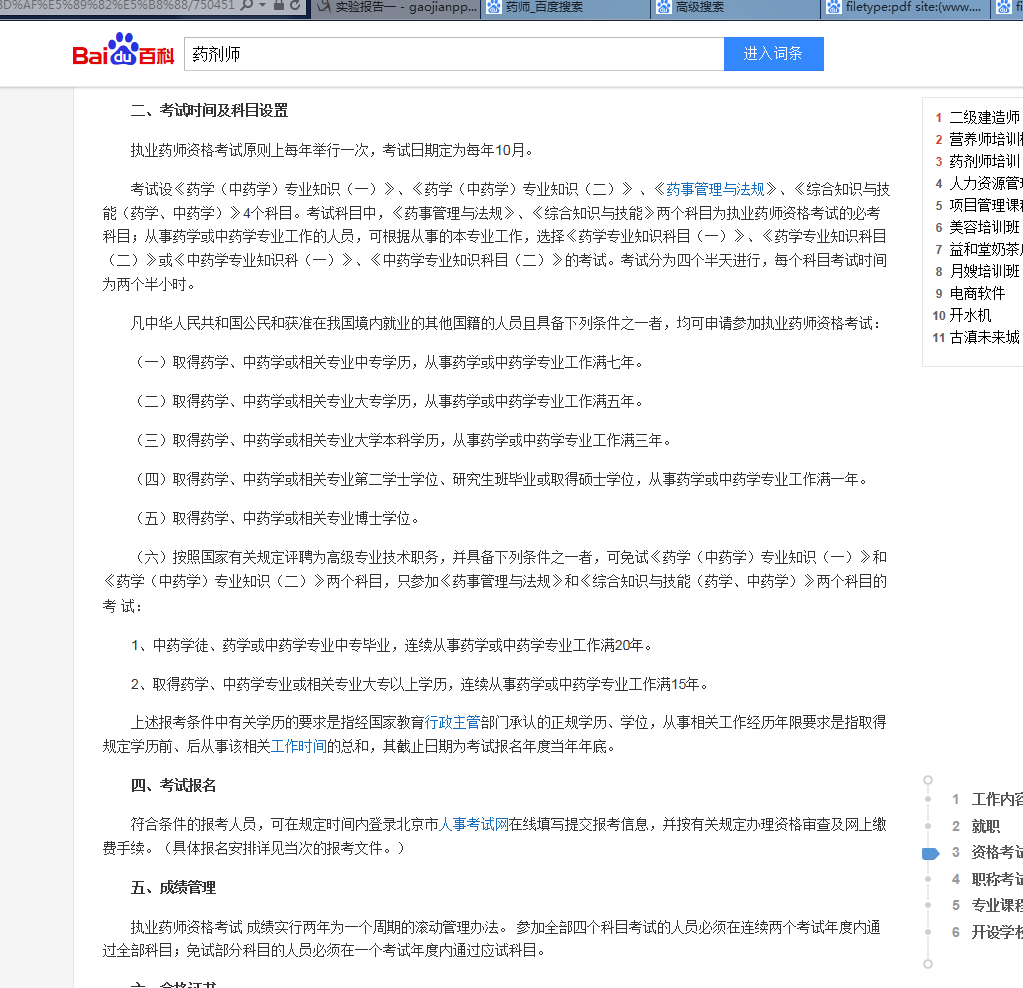 小丽是药学专业的一名本科生,现已从事药学专业的工作,目前她想考取一个资格证,但是报名条件中要求其工作满三年。那么,小丽想考取的是什么证。(请回答并附截图证明。)