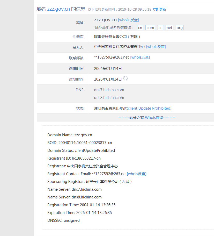 获取www.zzz.gov.cn域名注册时,注册人的邮箱是(附截图)