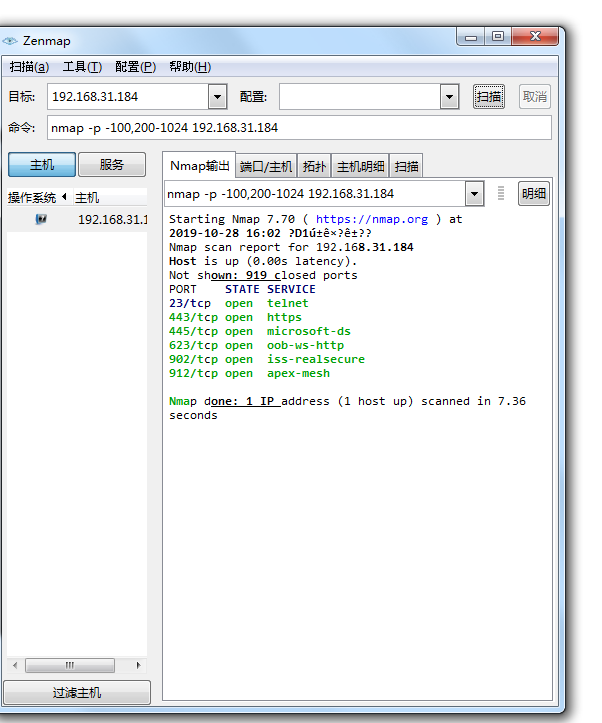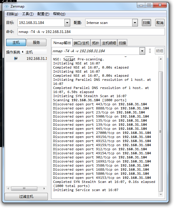 用syn扫描 命令: nmap -sS 192.168.31.184