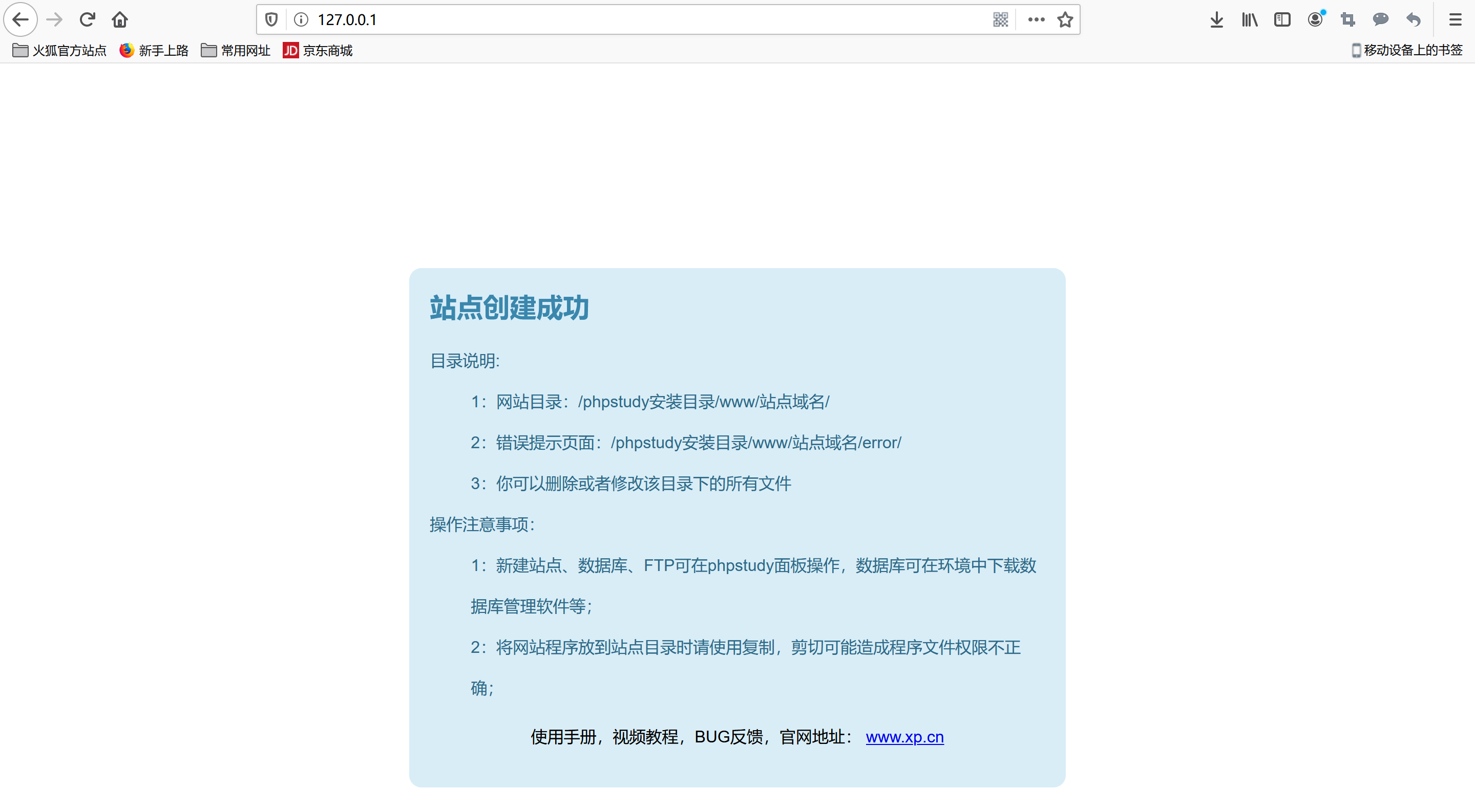然后这个时候进入http://localhost或者127.0.0.1就可以看到搭建成功