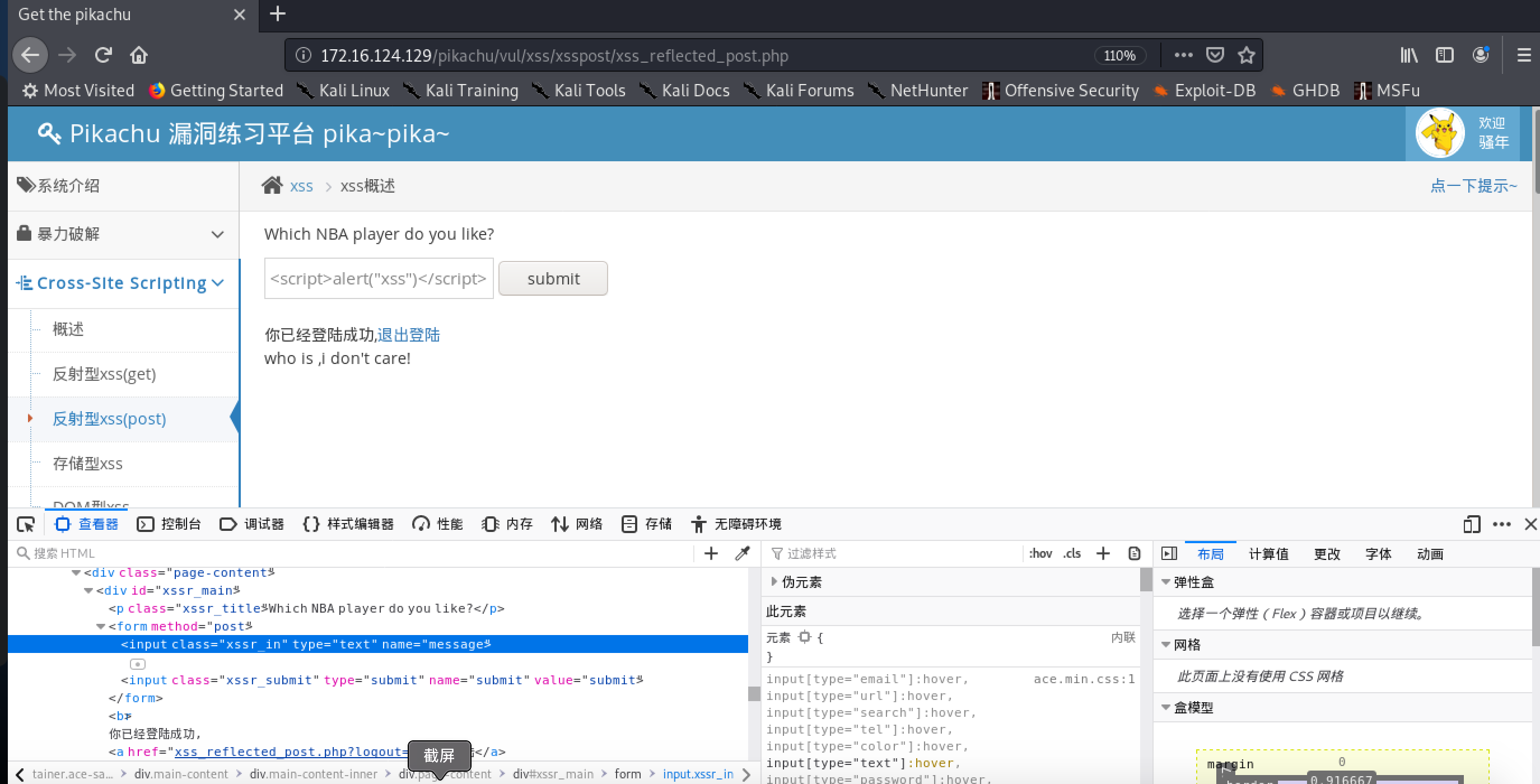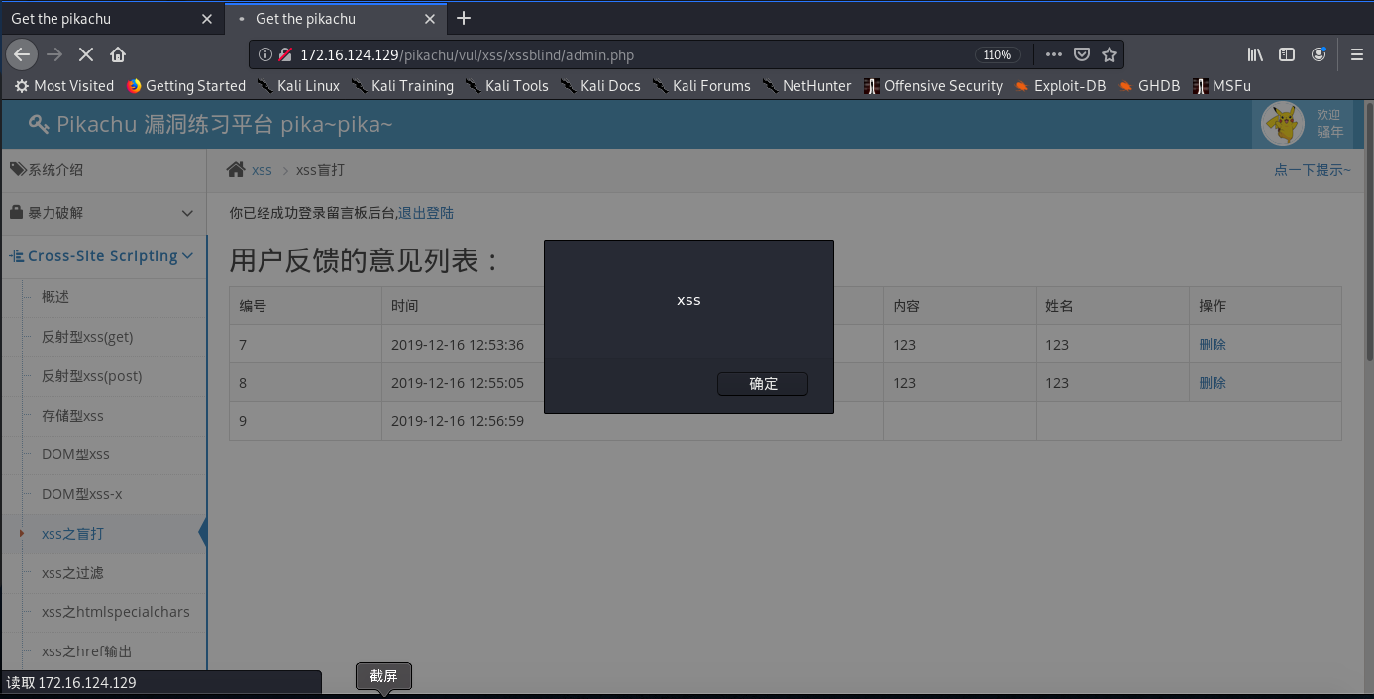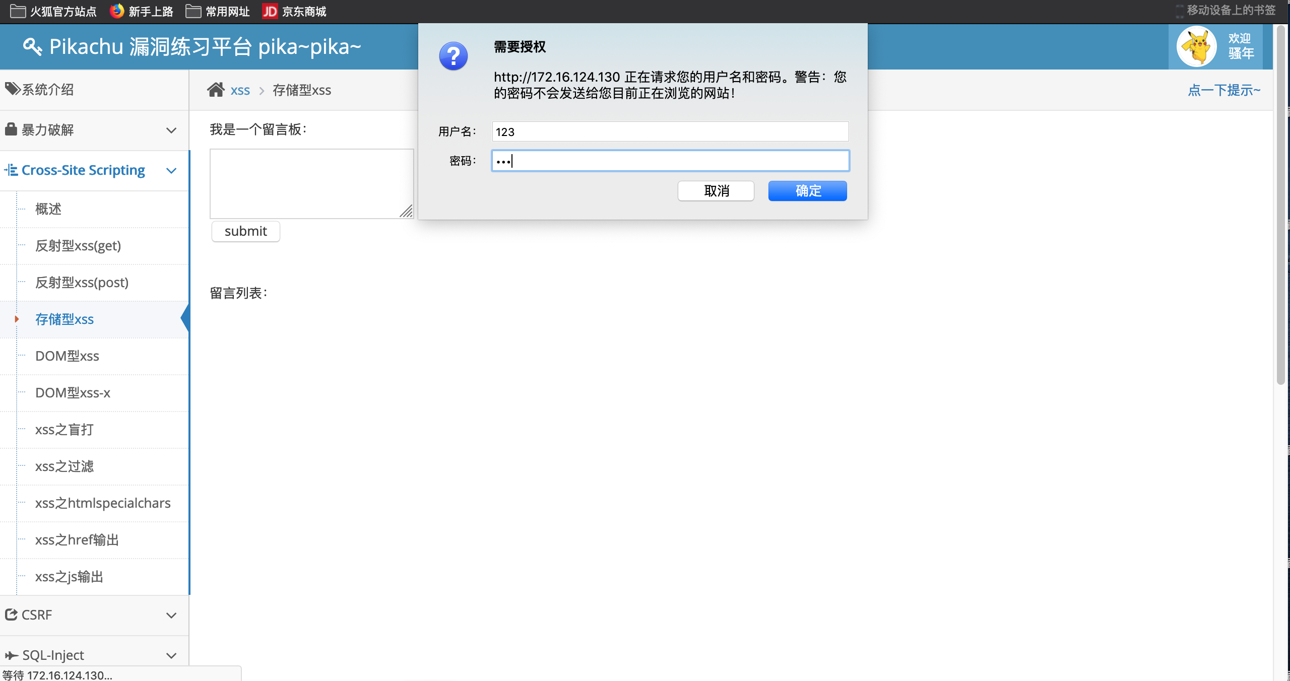 修改完成后,在登录用户的情况下访问此链接 http://192.168.1.1/pikachu/pkxss/xcookie/post.html