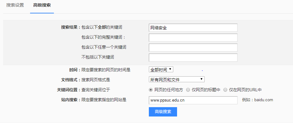 用百度或google搜索www.ppsuc.edu.cn中所有包含“网络安全”的网页。(附截图)