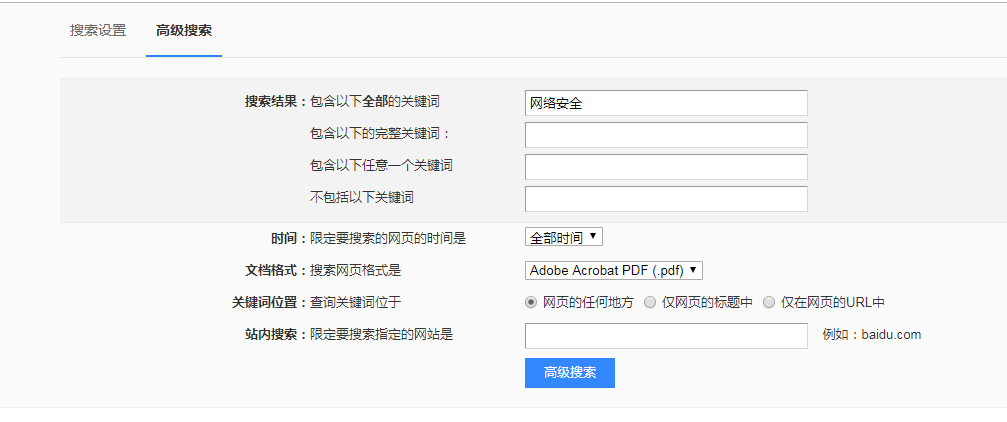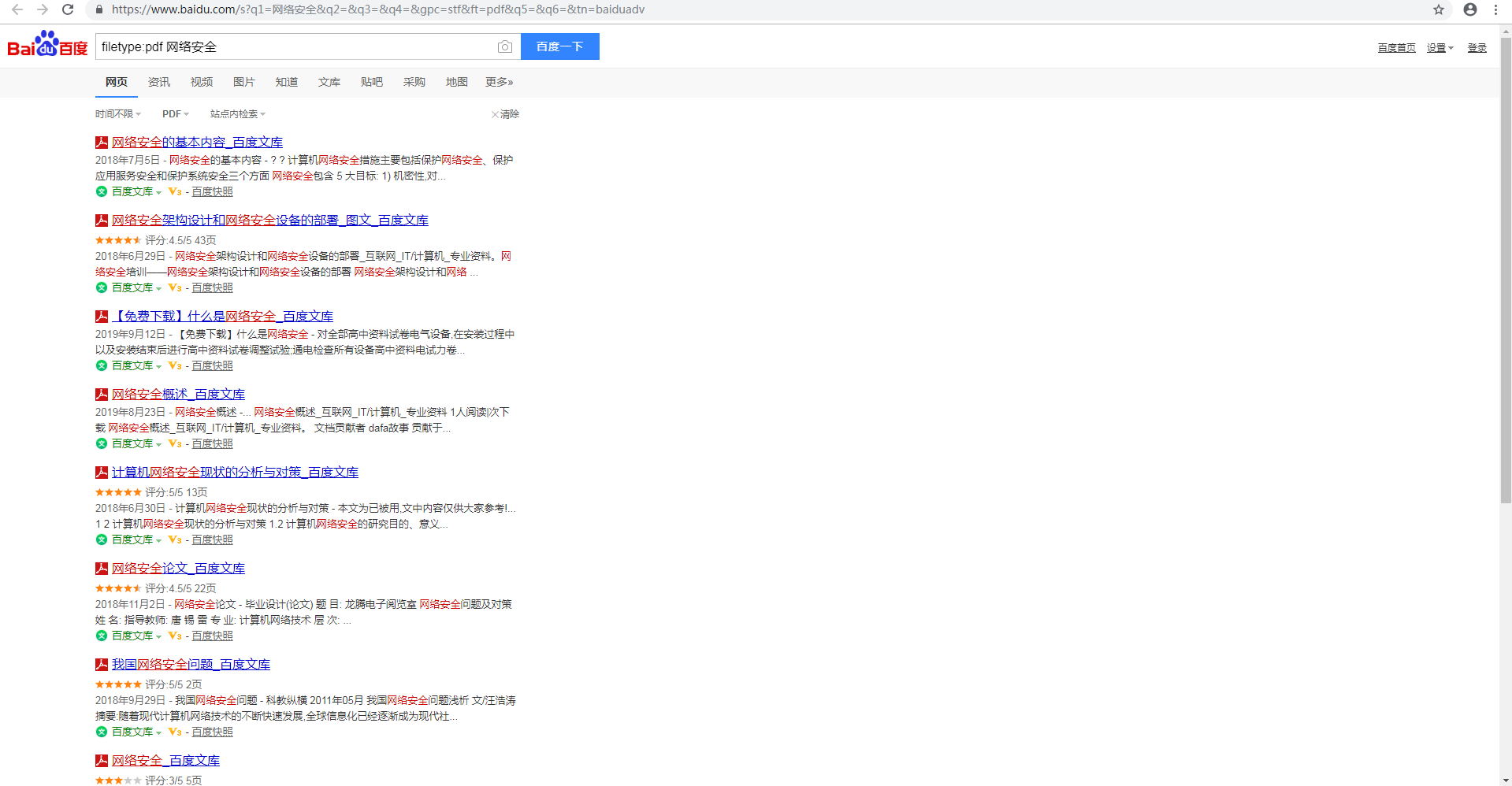 用百度或google搜索所有包含“网络安全”的pdf文档(附截图)