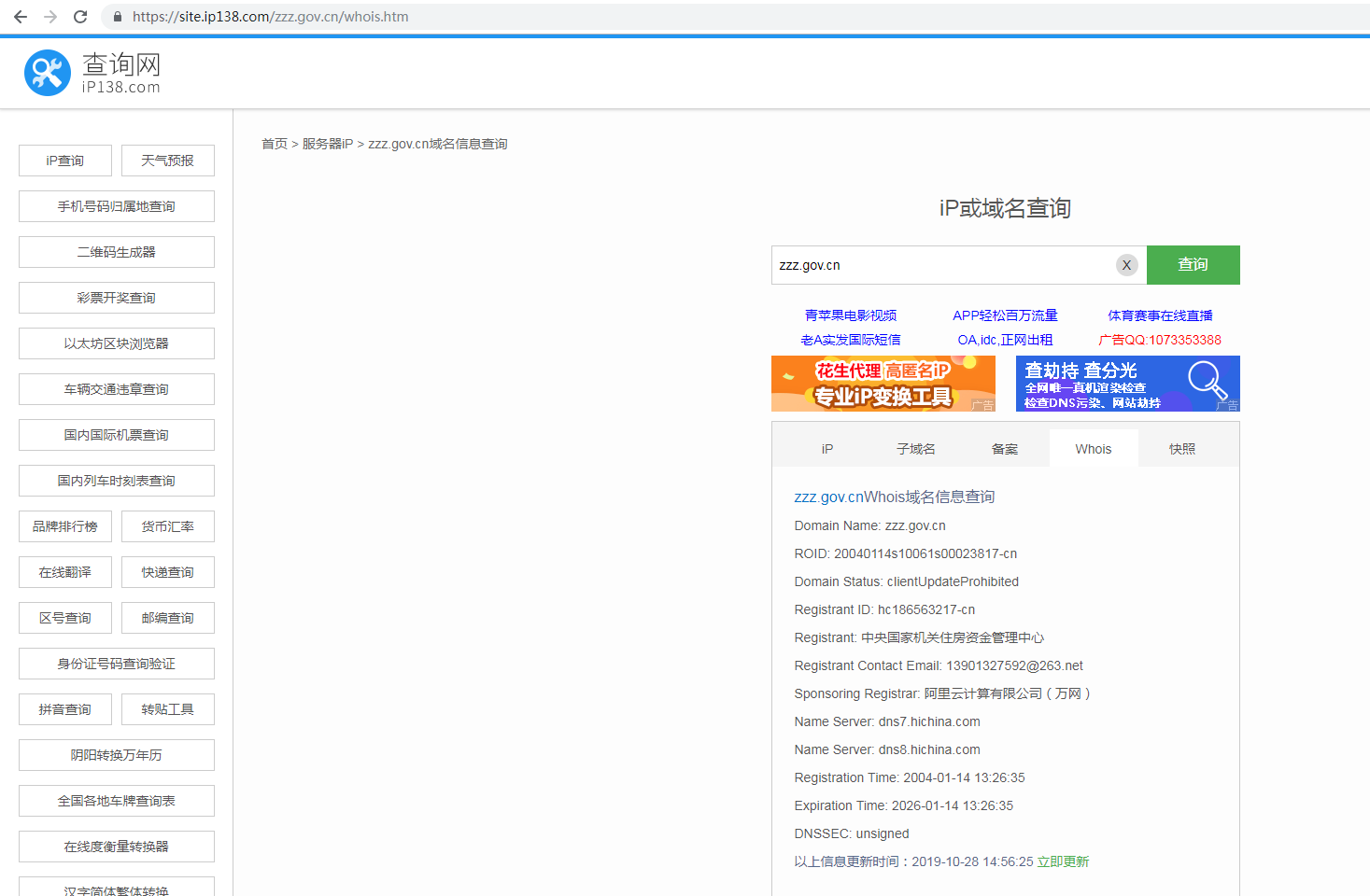 获取www.zzz.gov.cn域名注册时,注册人的邮箱是(附截图)