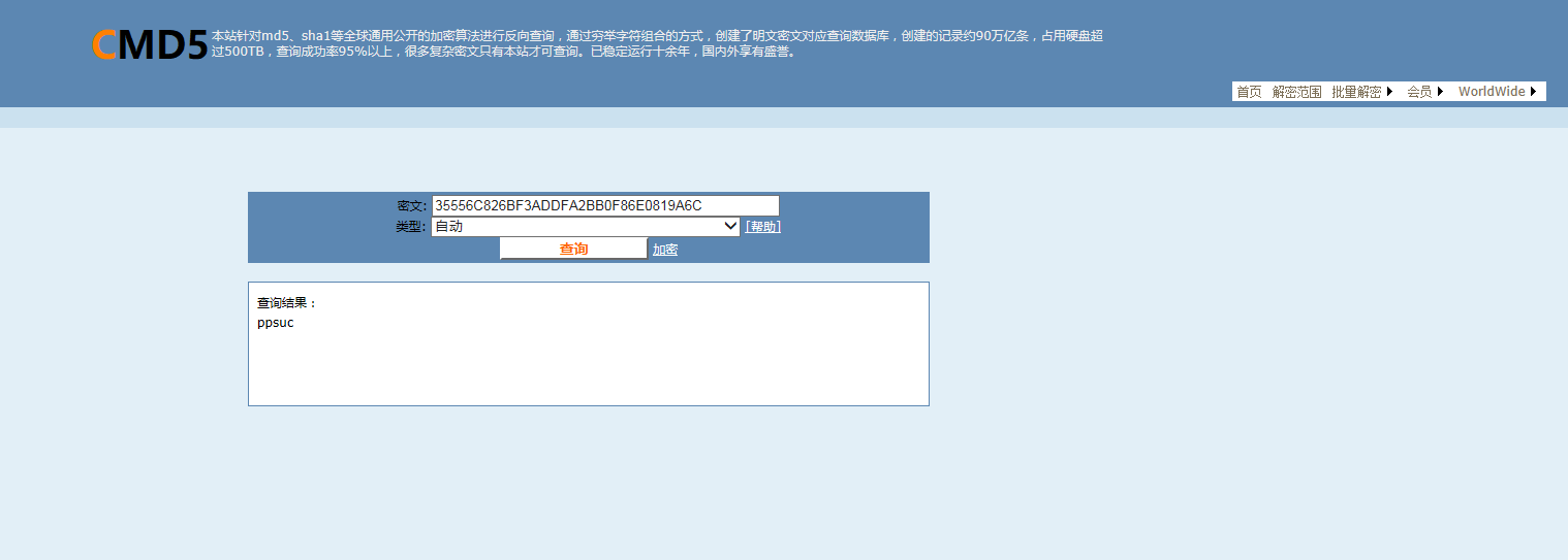 1. 请解密以下字符串35556C826BF3ADDFA2BB0F86E0819A6C。(附截图)