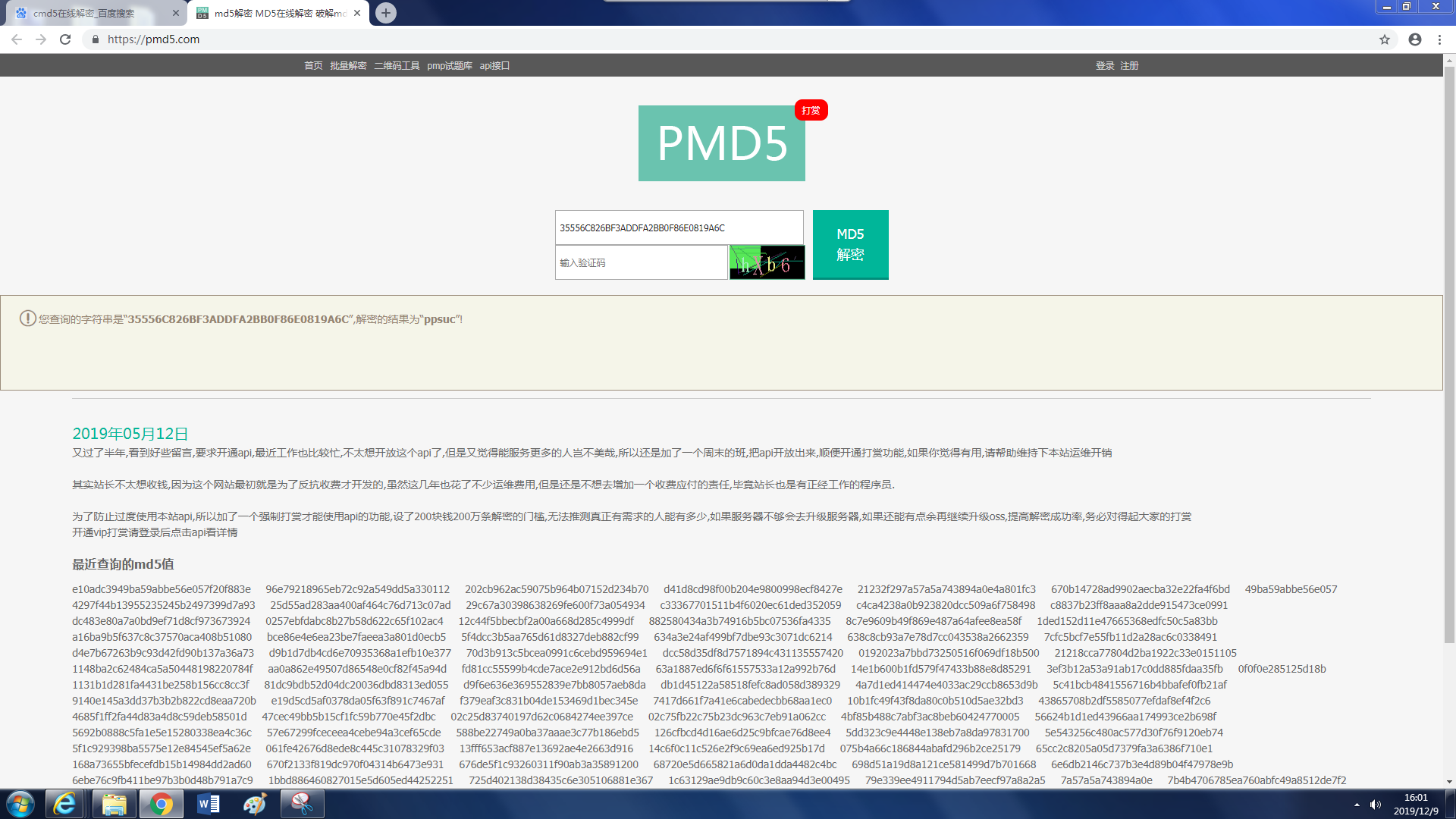1. 请解密以下字符串35556C826BF3ADDFA2BB0F86E0819A6C。(附截图)