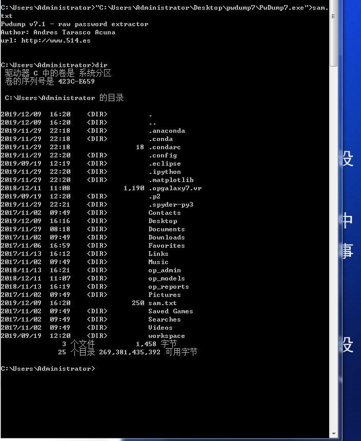 2.使用pwdump软件导出本机的sam文件