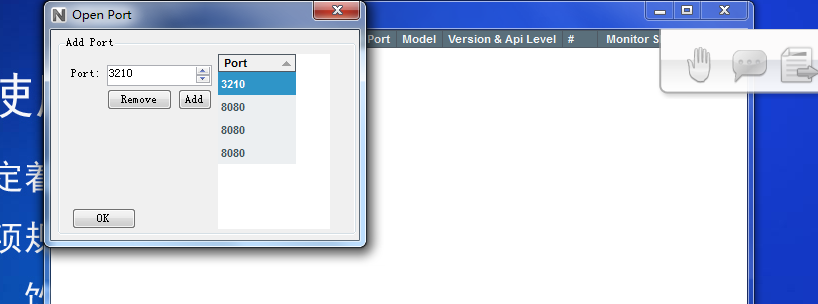 点击Listen Port,在弹出的对话框中输入端口号,并点击Add按钮,最后点击OK,成功监听本地端口。【本过程选用3210端口,实验过程大家可以自己选择端口】