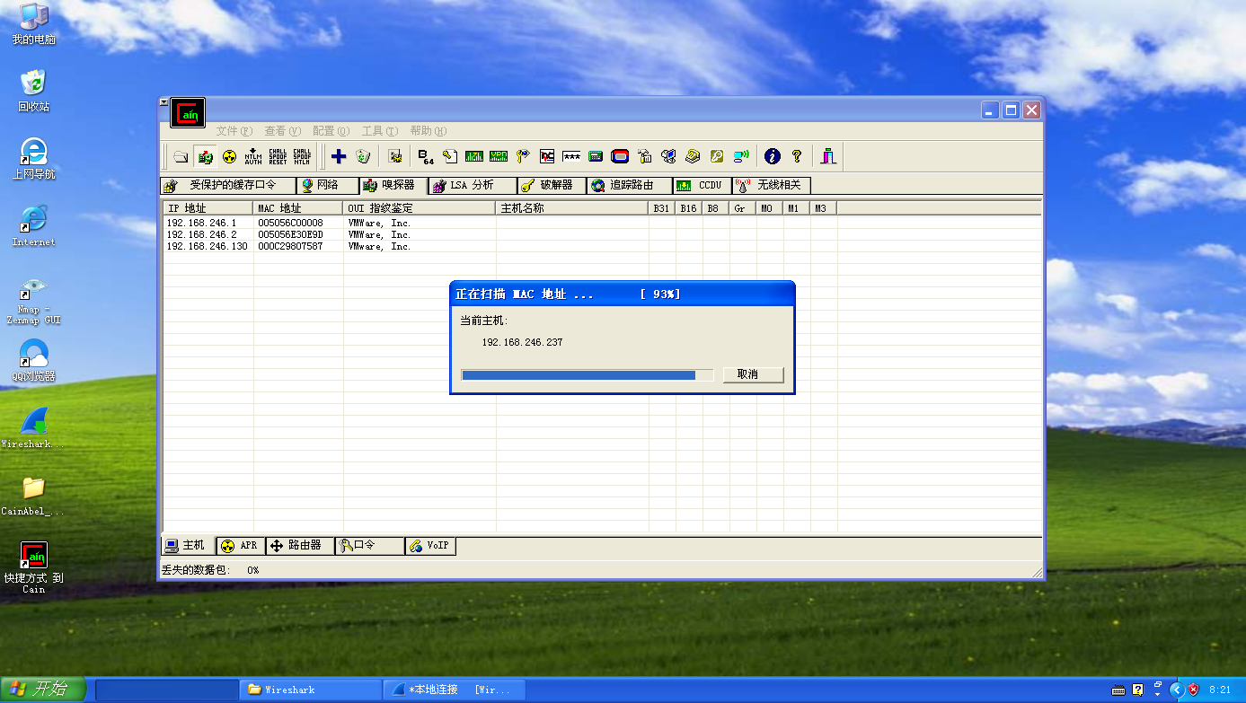 2、在192.168.246.129号机器上运行cain。