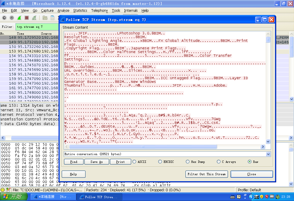 选择ftp-data类型数据包,右击跟踪TCP流。
